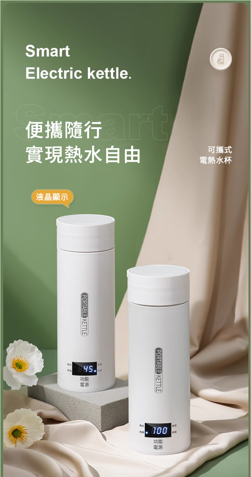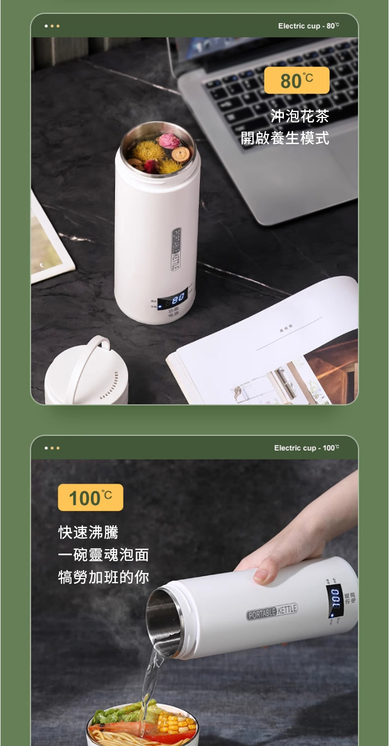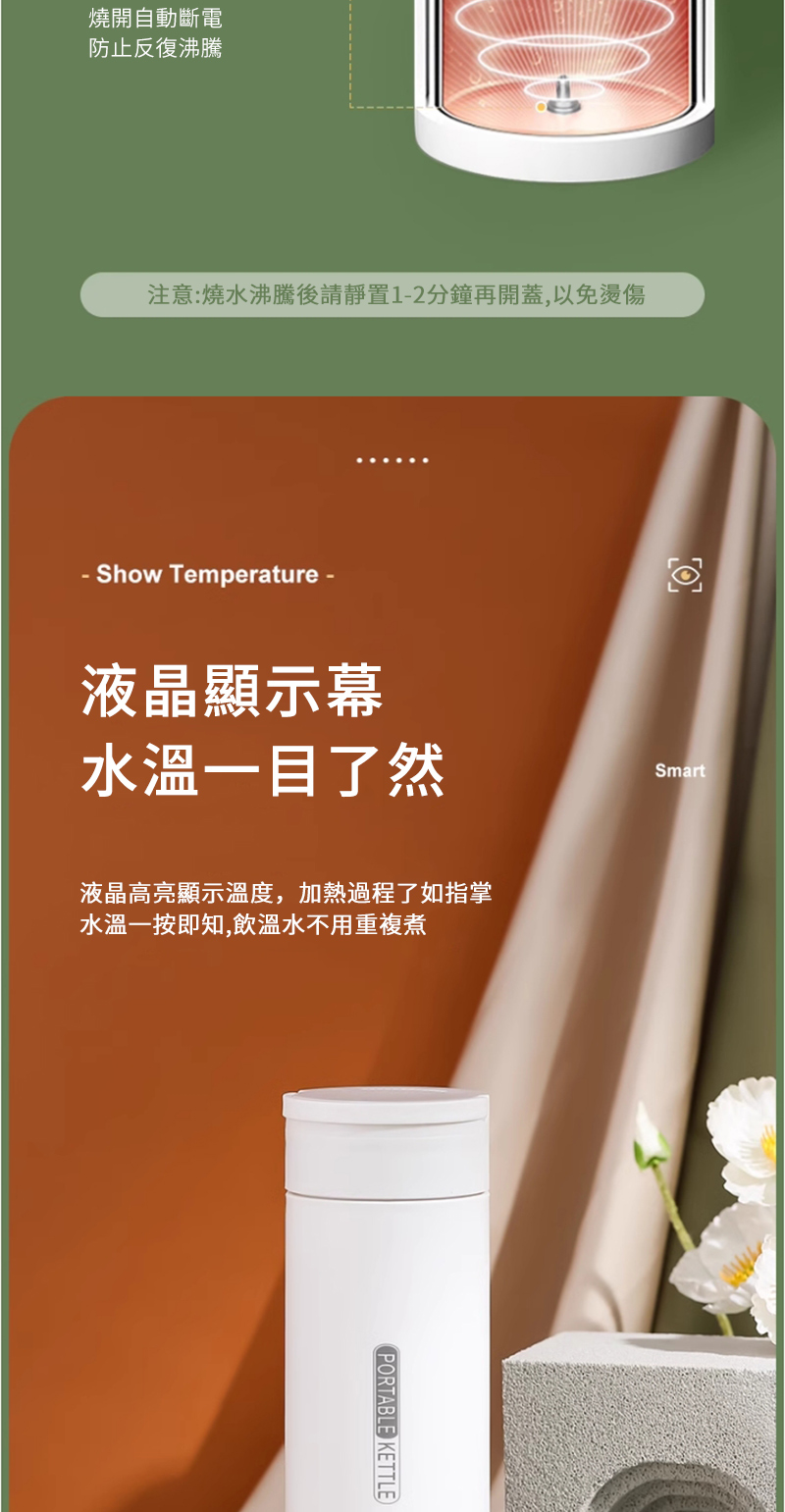 316不銹鋼電動燒水杯 智能加熱一體保溫杯 旅行便攜電熱水壺 快煮壺 500ML