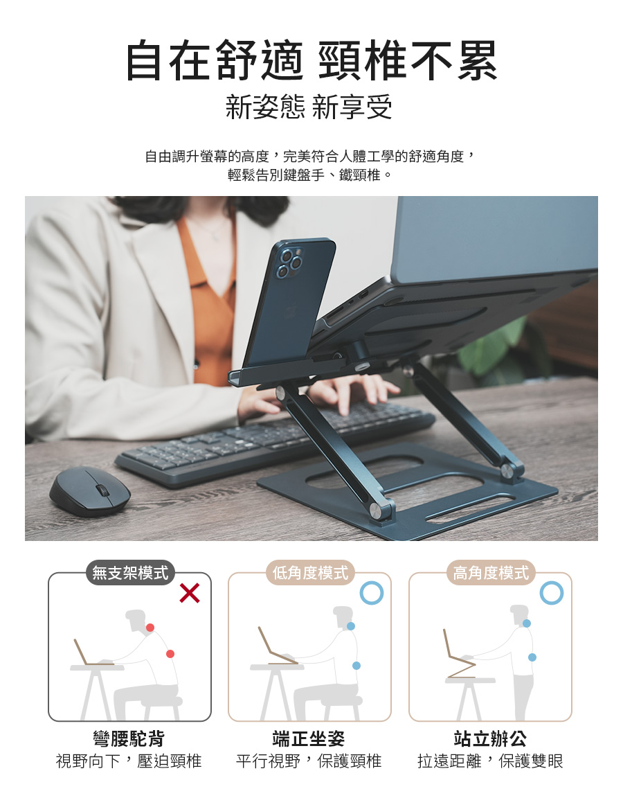 ✔️二段架扣|輕鬆駕馭筆電與書籍