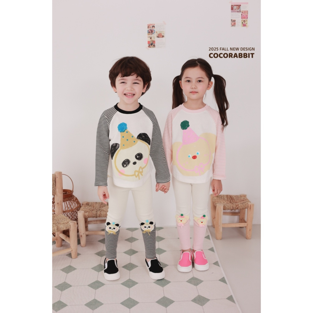 正韓童裝 COCO RABBIT 橫條拼接生日熊T