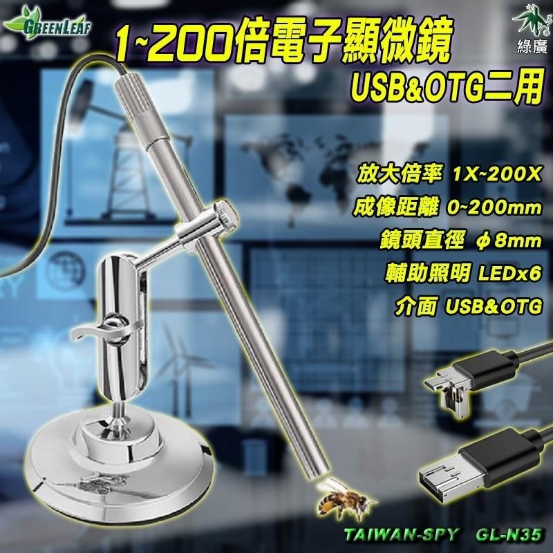 GL-N35 數位顯微鏡,支援 USB & OTG雙介面,適用於電腦、手機即時檢測。放大倍率1~200倍,鏡頭僅8mm,搭配8顆LED輔助燈,具備 IP67防水防塵,方便各種工程檢測、零件檢查與日常研究。