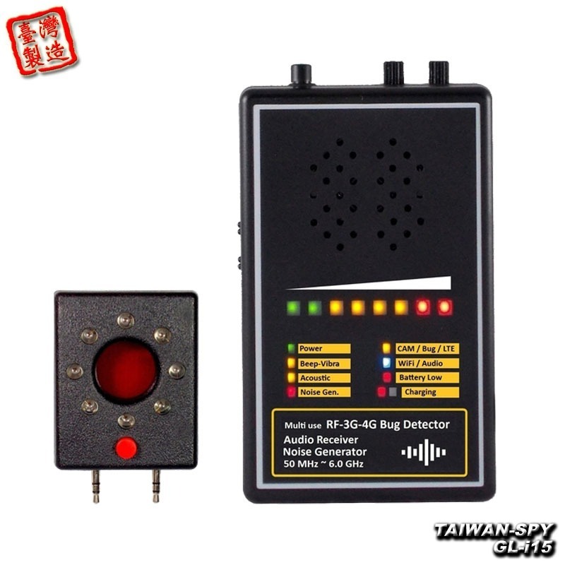 靈敏度調整功能,可協助使用者找到無線電波的號源位置,無論是無線竊聽器或是3G/4G竊聽器都可測到。附加的噪音產生器功能,可干擾錄音,讓錄音品質不清楚,保護使用者重要談話安全。
