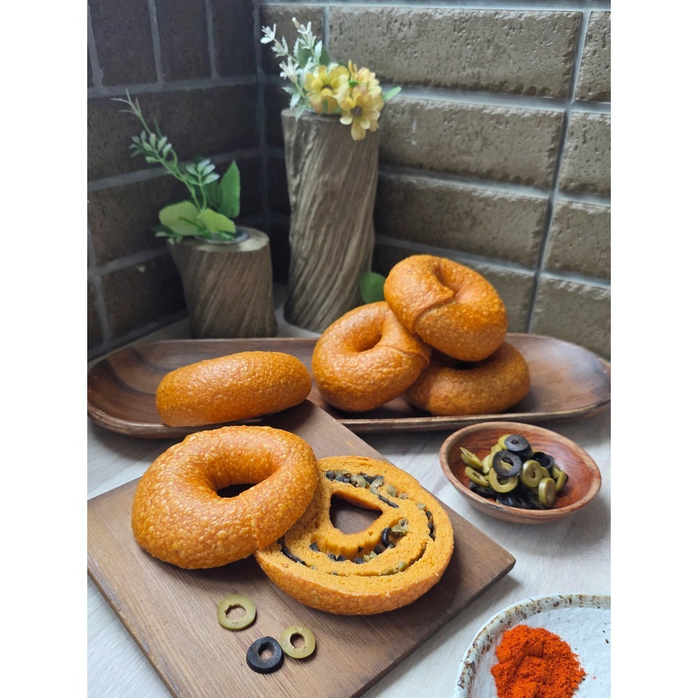 無糖無油豆渣貝果系列-【匈牙利紅椒雙色橄欖】