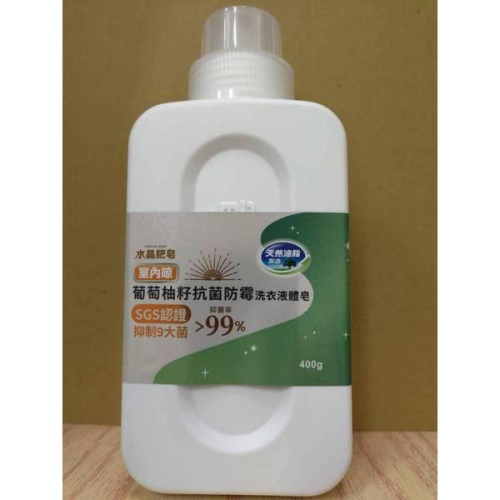 南僑水晶  葡萄柚籽  抗菌防霉  洗衣液體皂  室內晾  400g 瓶 效期:2028年