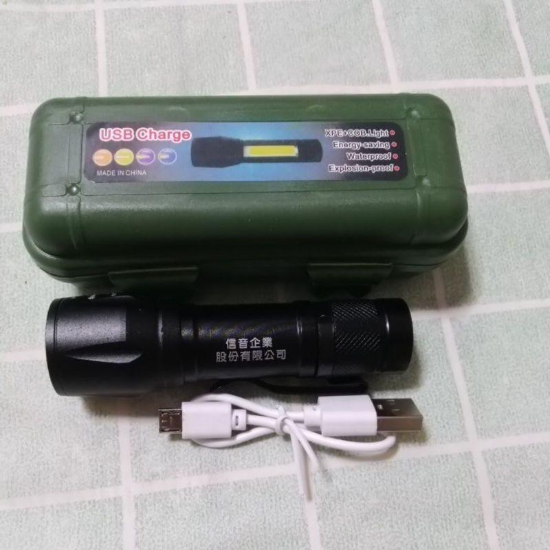 露營手電筒 充電式手電筒 可變焦 現貨 信音 股東會紀念品 有公司字樣 充電式無需電池 隨身攜帶放包包剛好 LED側邊燈+手電筒二合一 鋁合金外殼 側邊燈照明距離約2-3公尺 手電筒照明距離約1-6公尺 伸縮變焦 三段可調光度