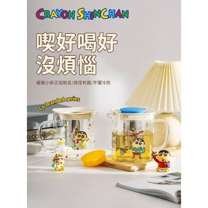 【樂融融】正版現貨 蠟筆小新 玻璃茶壺 冷水壺 熱水壺 水杯 新之助 動感超人 玻璃材質 摩登主婦