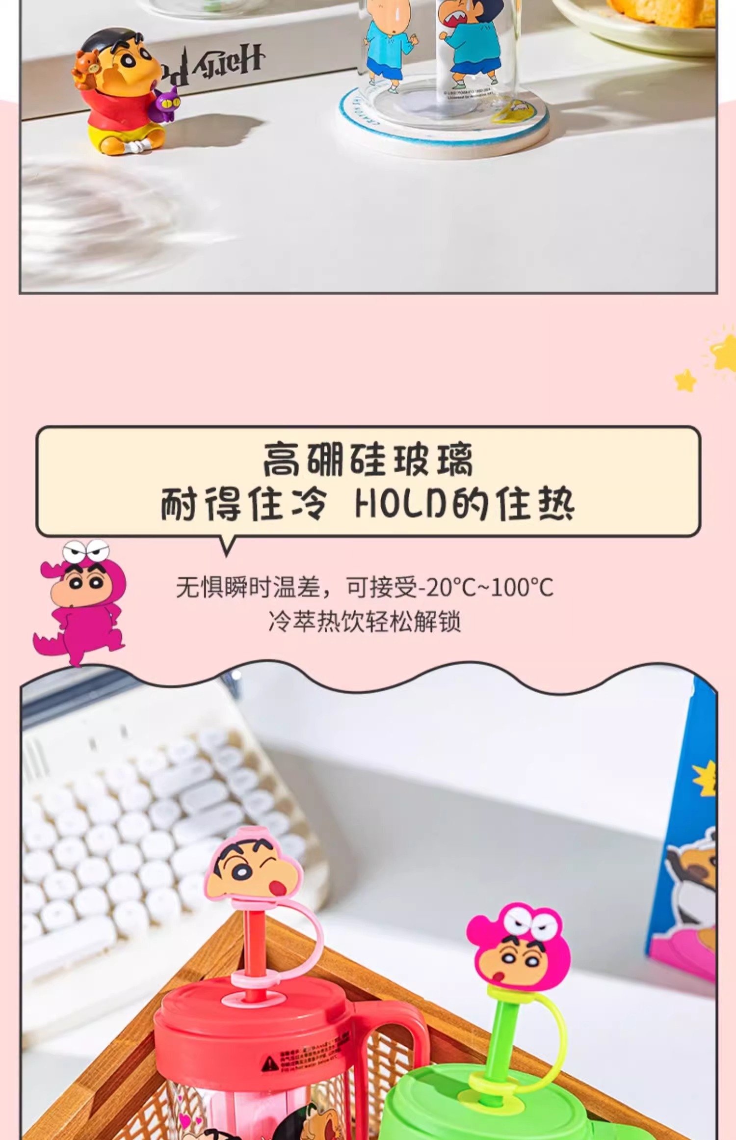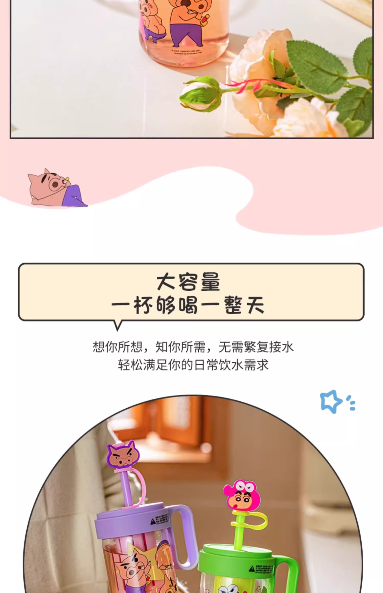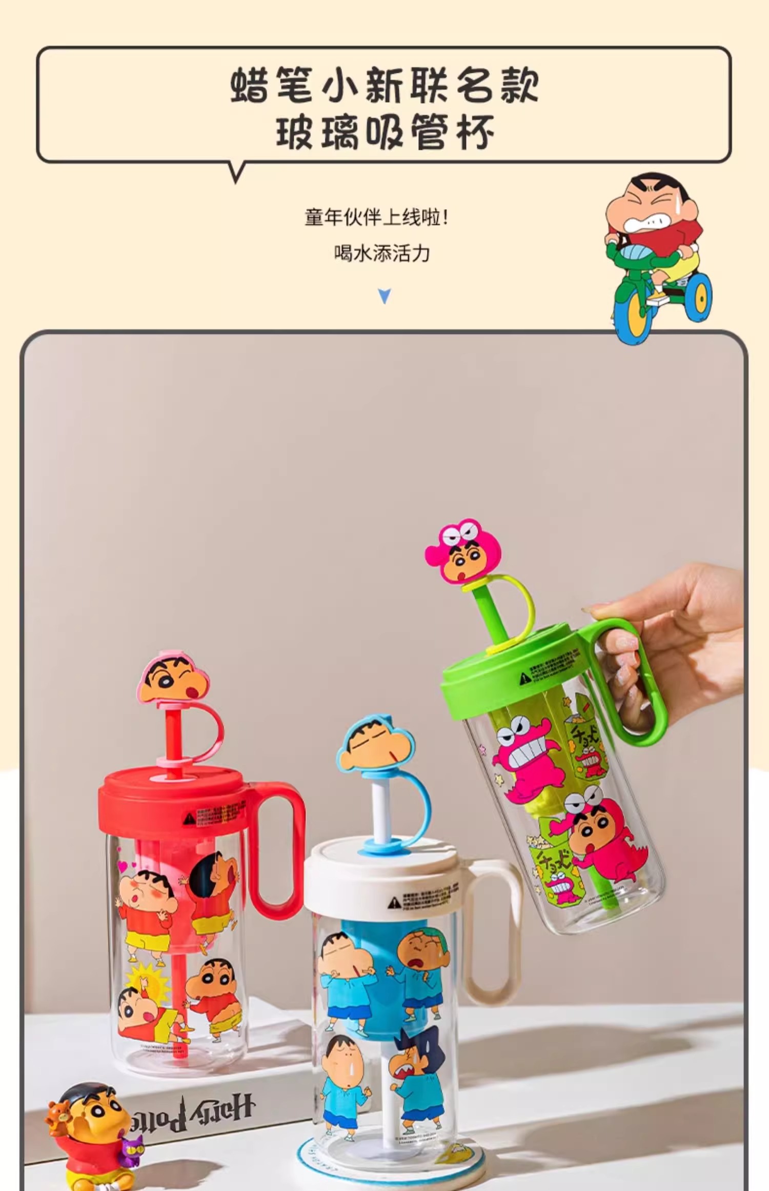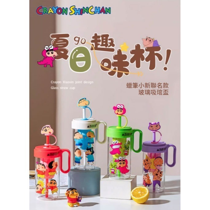 【樂融融】正版現貨 蠟筆小新 玻璃趣味杯 吸管杯 奶茶杯 環保杯 水杯 飲料杯 玻璃杯 新之助 送禮 摩登主婦