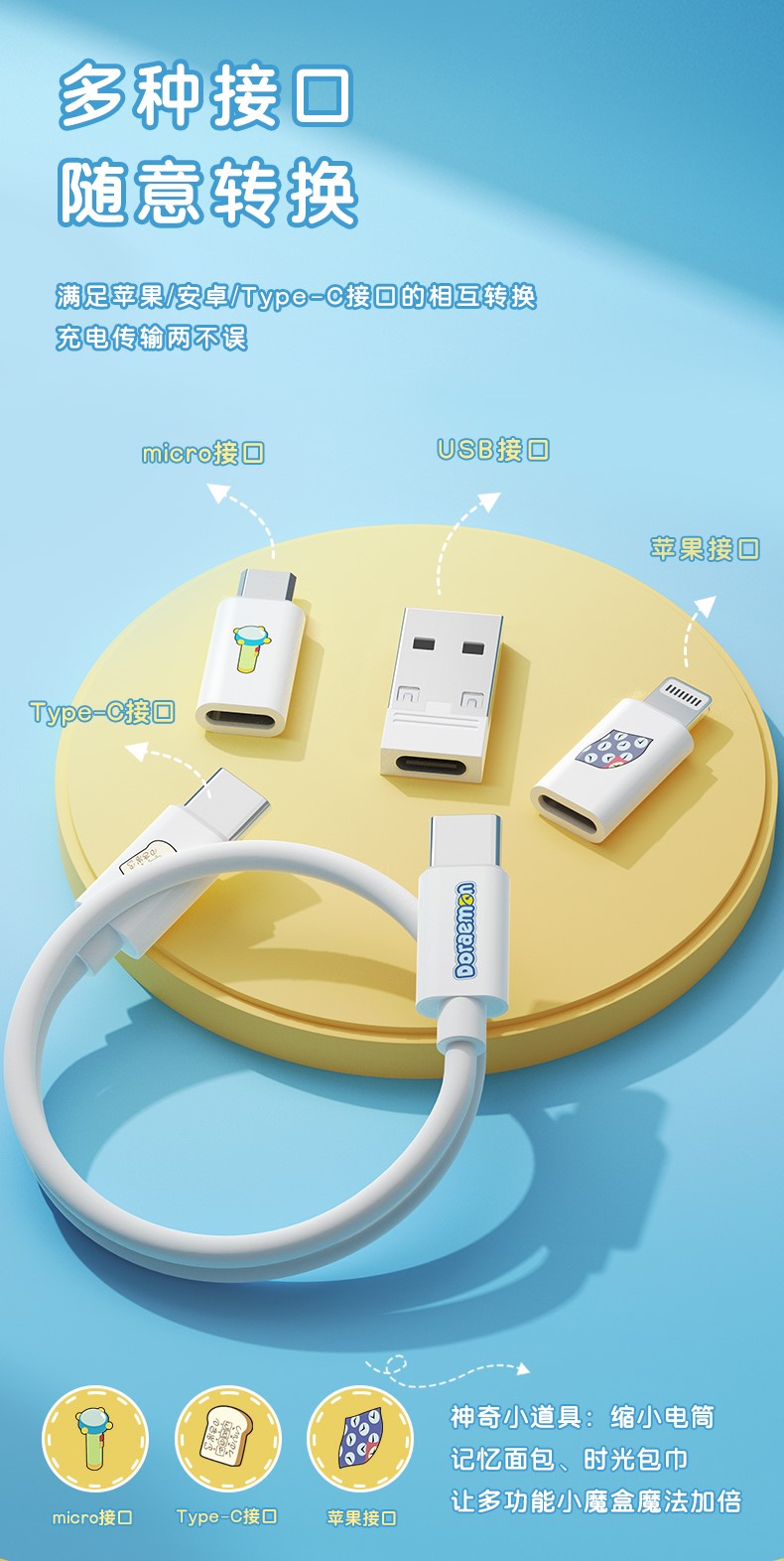 【有買有送】正版現貨 哆啦A夢 多功能線盒 充電線 type-c 卡針 轉接 usb 傳輸線 旅行必備 哆啦a夢小叮噹