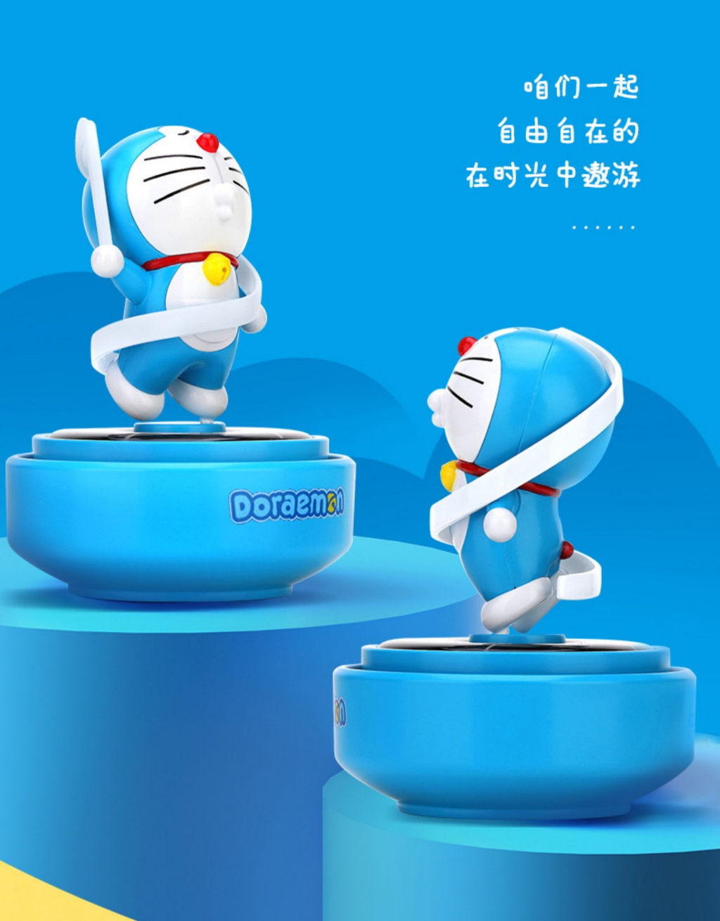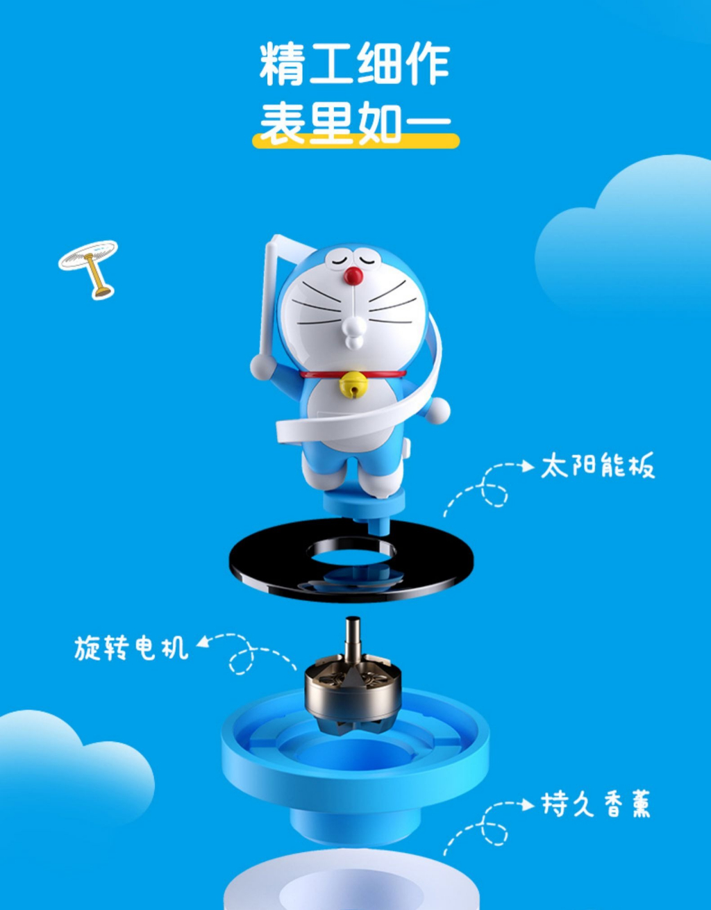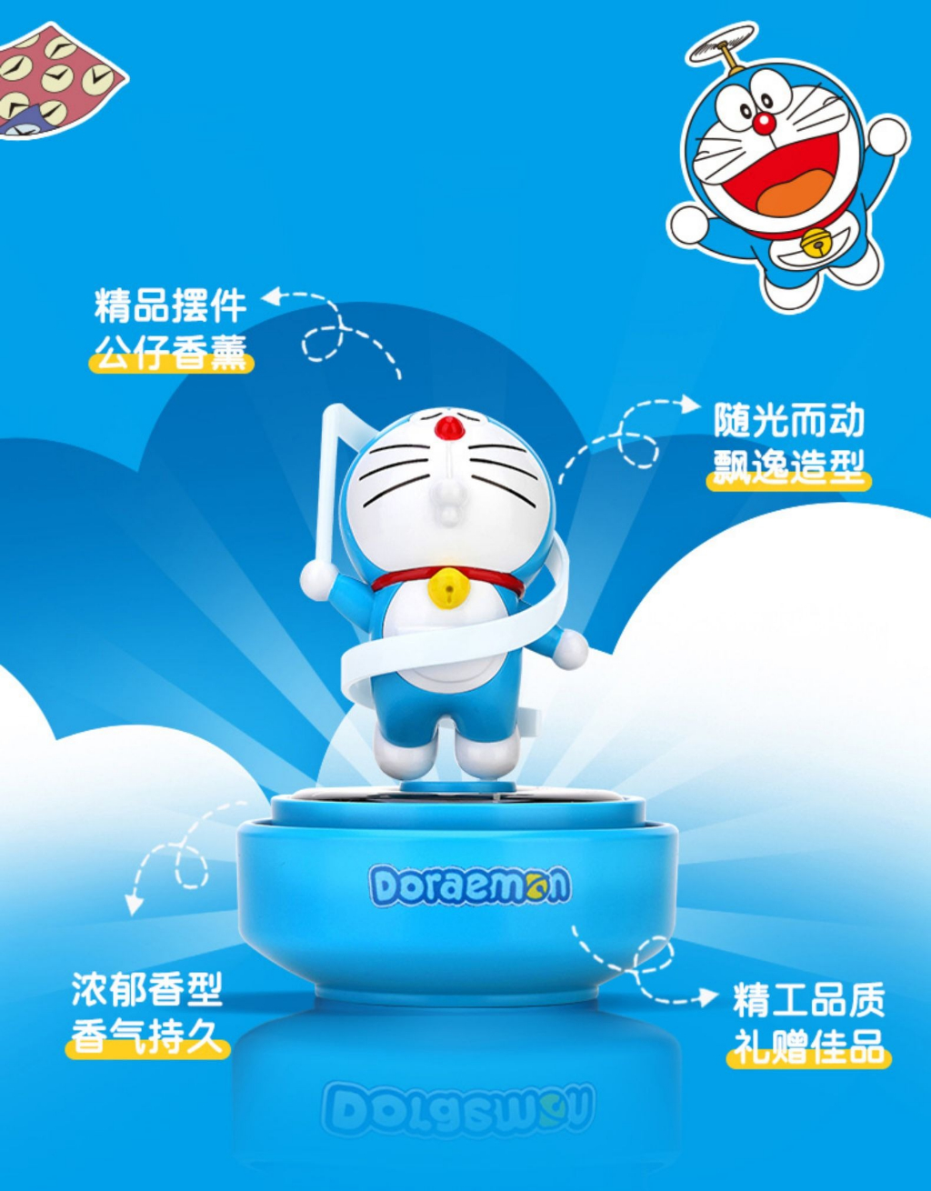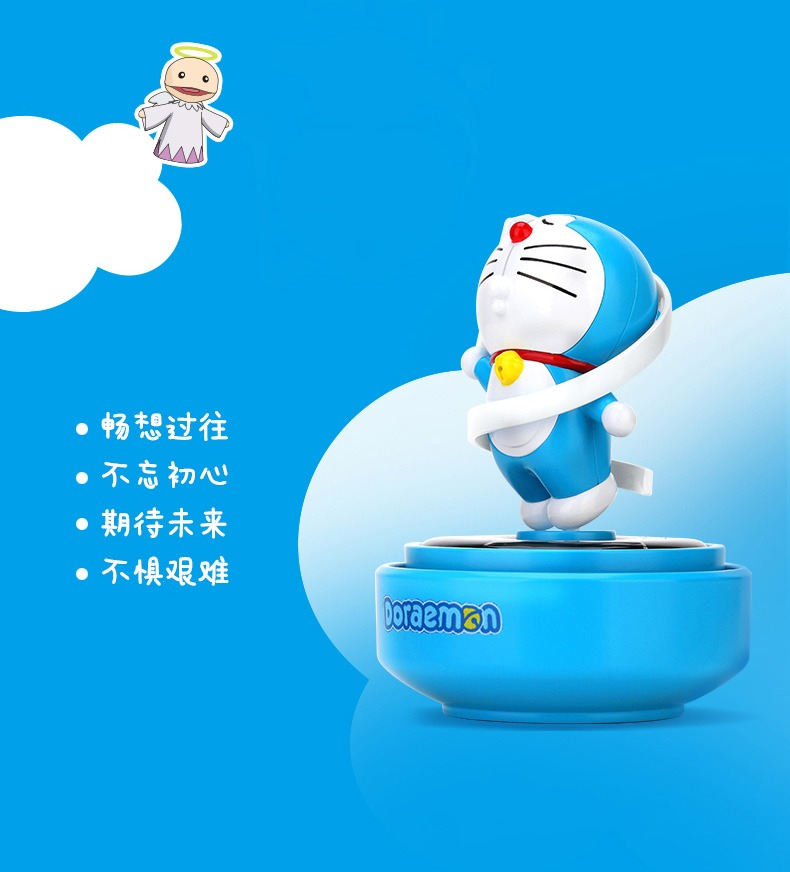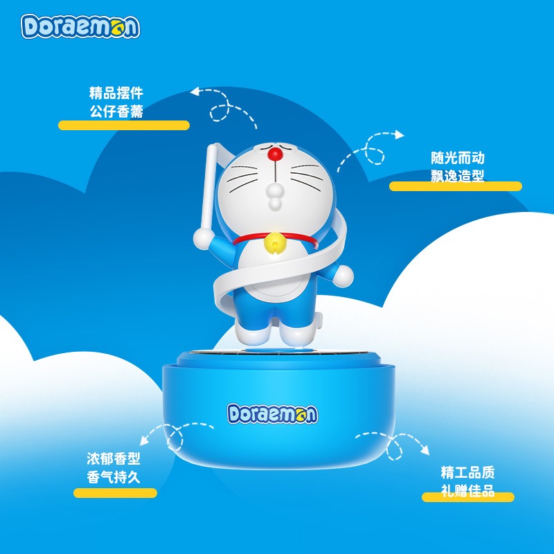 【現貨】正版 哆啦A夢 太陽能旋轉香薰 檢測紫外線 藍胖子 車載 汽車 內飾 小叮噹 哆啦a夢 香水 擺件