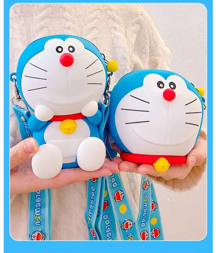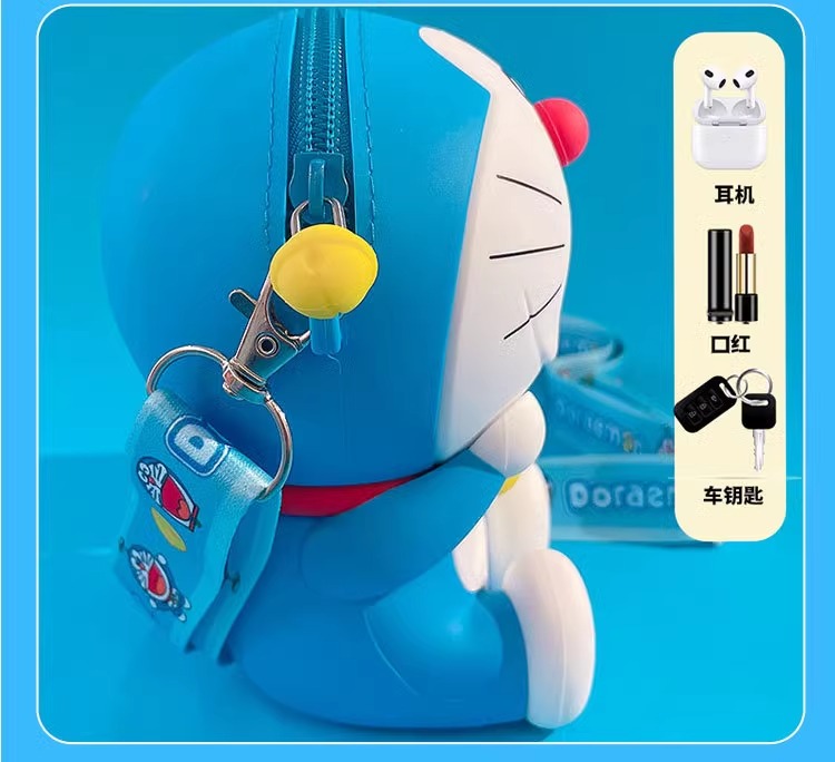 正版 哆啦A夢 硅膠錢包 斜挎包 最新款 吊飾 包包 哆啦a夢 零錢包 硬幣包 耳機包 側背包
