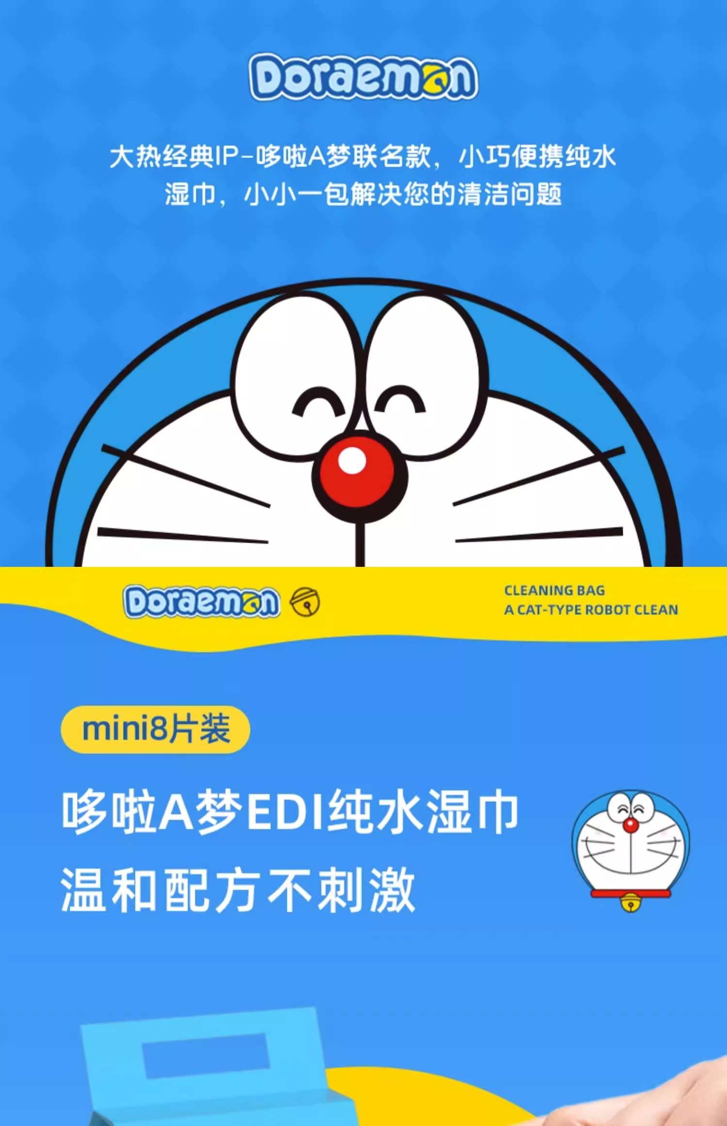 正版 哆啦A夢 迷你濕紙巾 8片/小包 嬰兒可用 加厚 柔濕巾 純水濕巾 哆啦a夢 小叮噹 濕紙巾