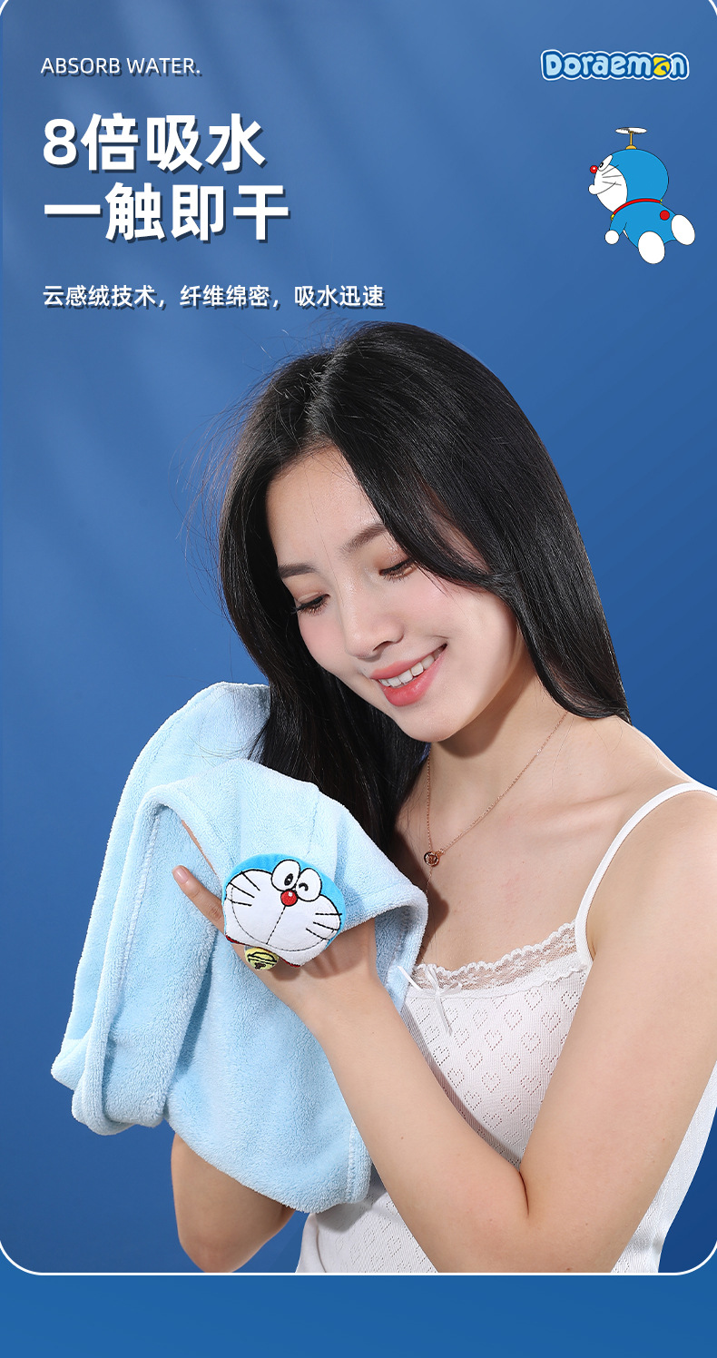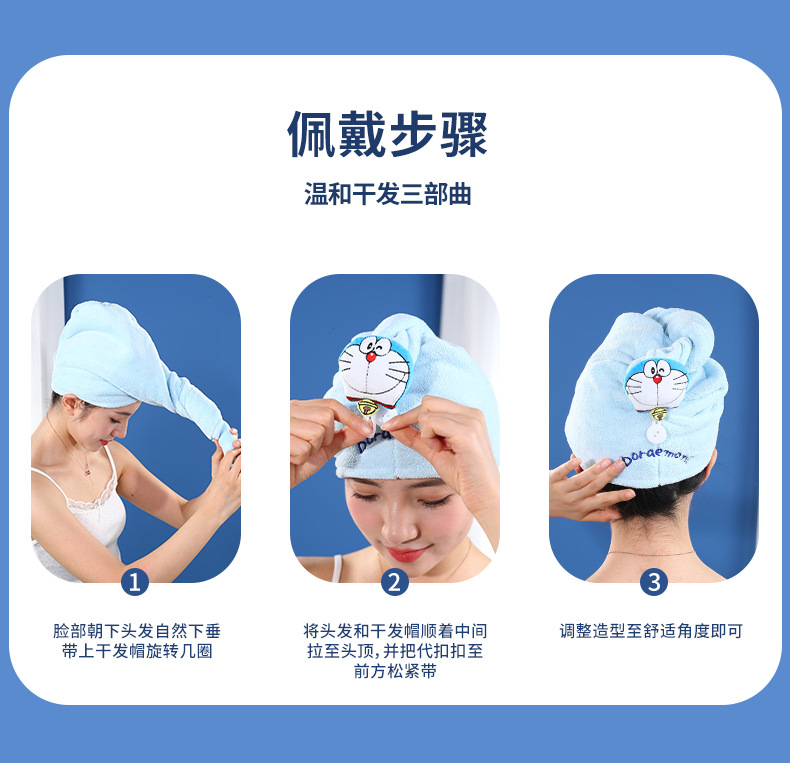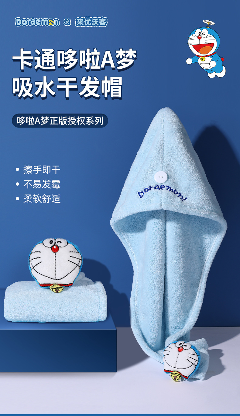 【樂融融】正版現貨 哆啦A夢 乾髮帽 乾髮巾 浴室 吸水 速乾 毛巾 小叮噹 哆啦a夢 浴室 洗頭 洗髮 青豆