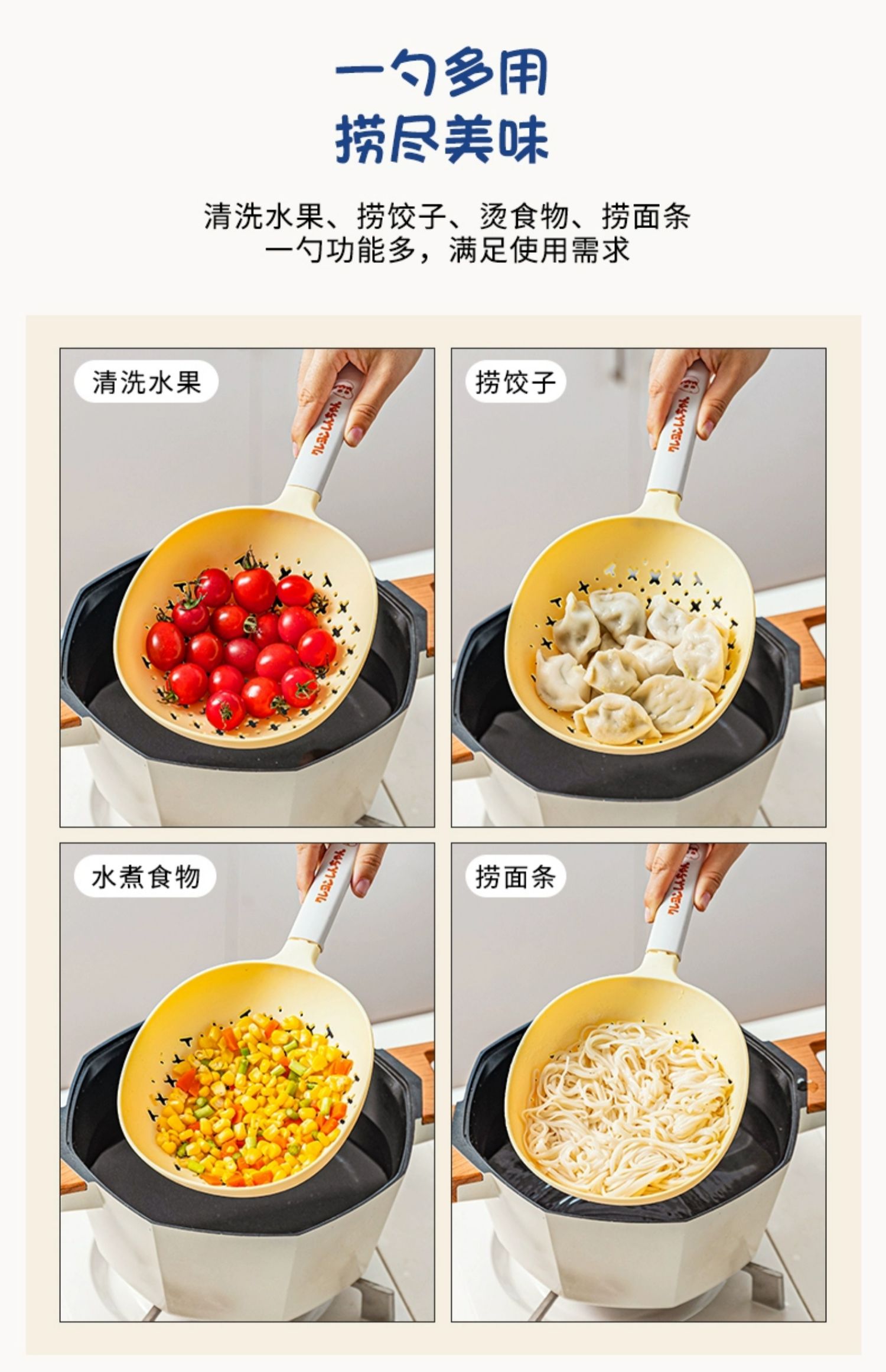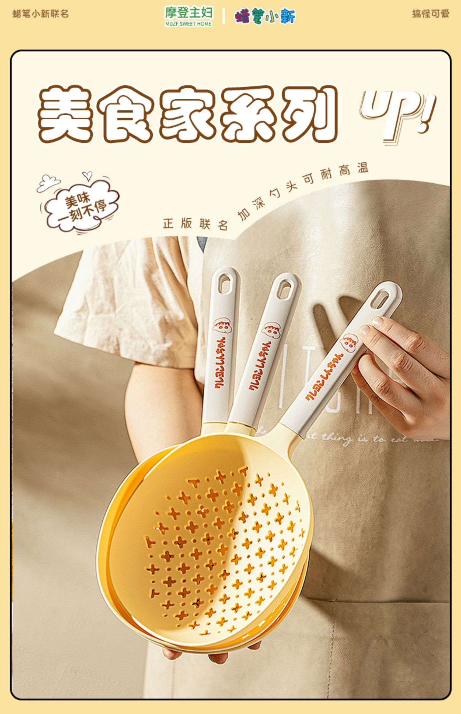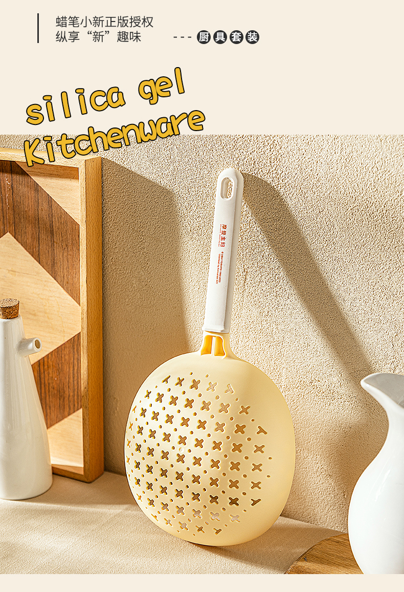【現貨】正版 蠟筆小新 大漏勺 廚房 撈面 洗菜 洗水果 撈勺 濾勺 硅膠笊籬 硅膠手柄 小白 摩登主婦 新之助 送禮