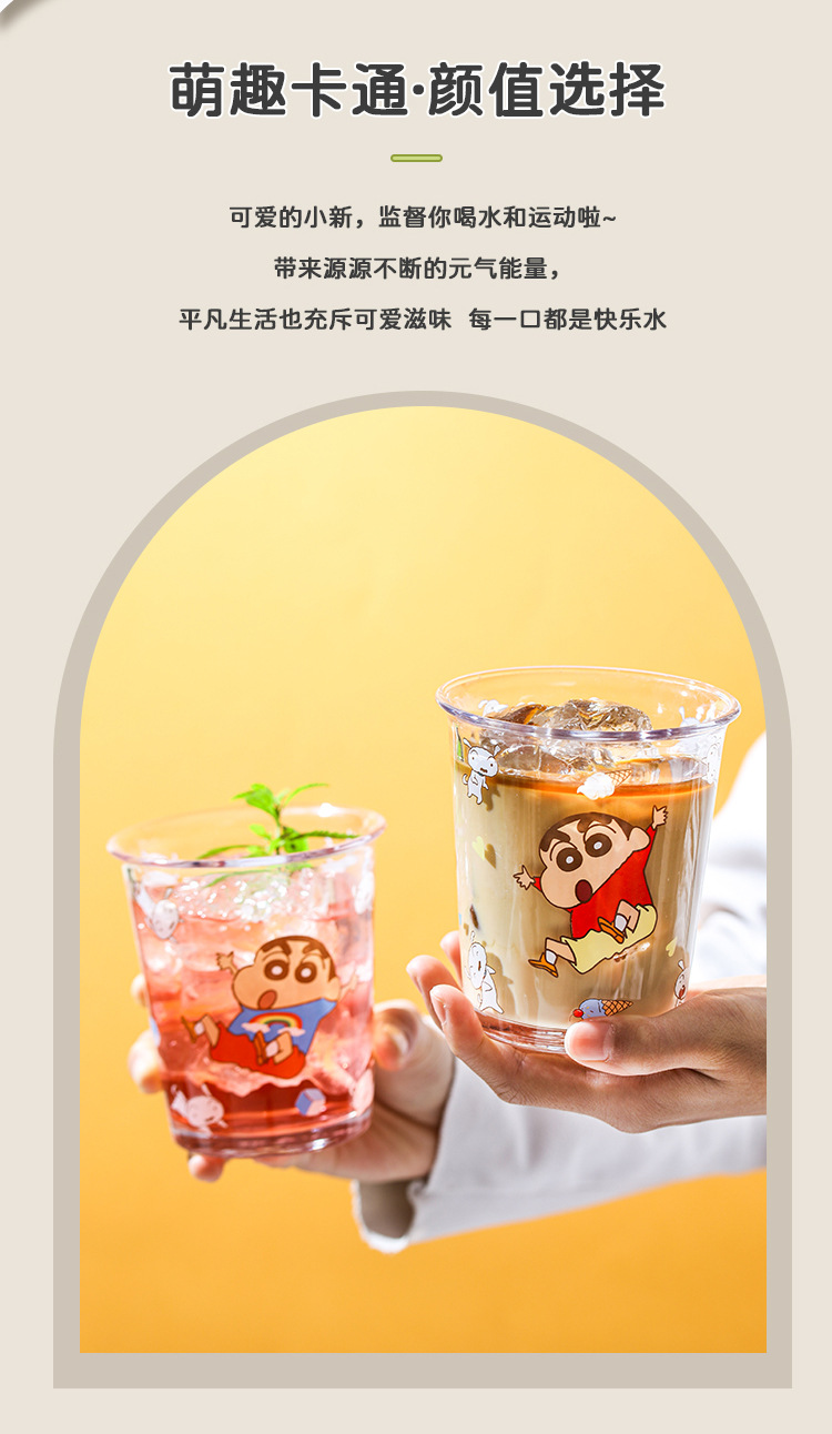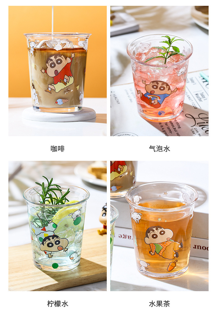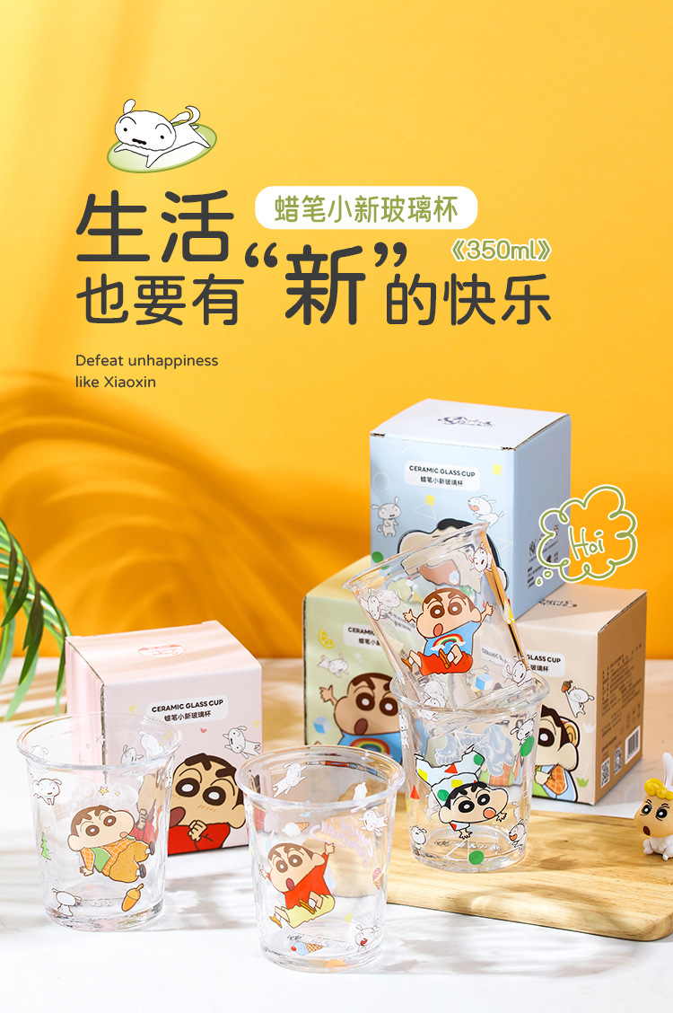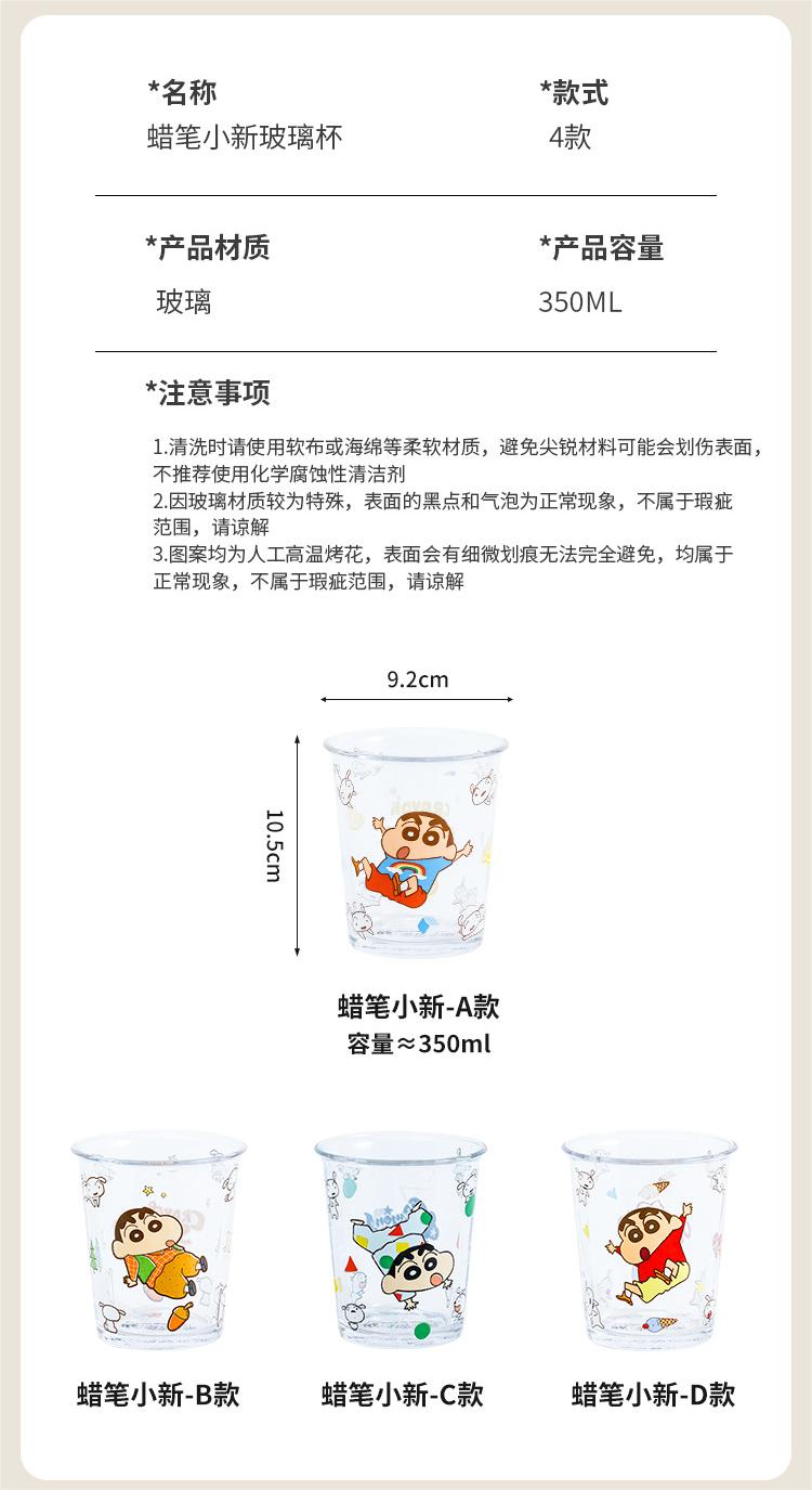 【現貨】正版 蠟筆小新 翻口玻璃杯 350ml 茶杯 咖啡杯 易清洗 水杯 飲料杯 牛奶杯 送禮 新之助 曙曦