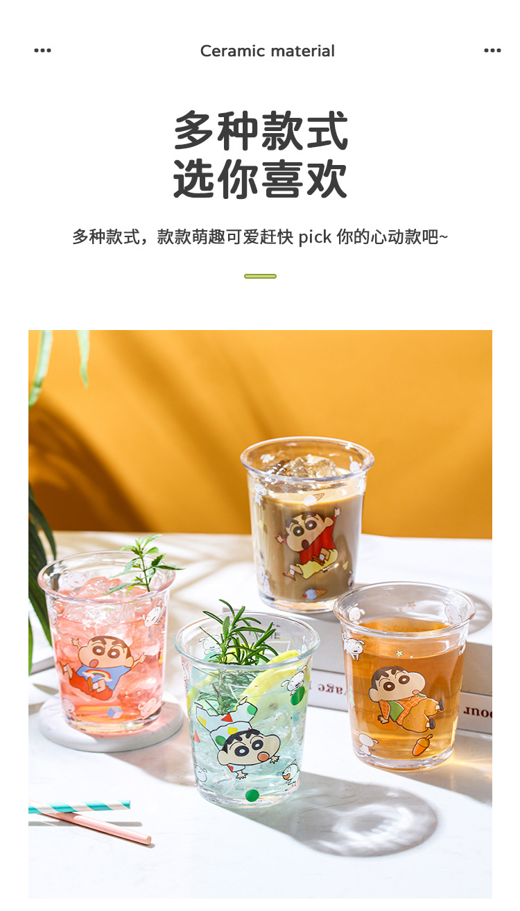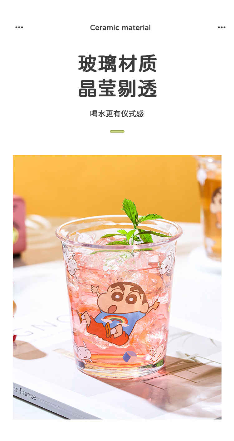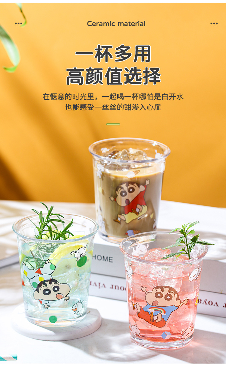 【現貨】正版 蠟筆小新 翻口玻璃杯 350ml 茶杯 咖啡杯 易清洗 水杯 飲料杯 牛奶杯 送禮 新之助 曙曦