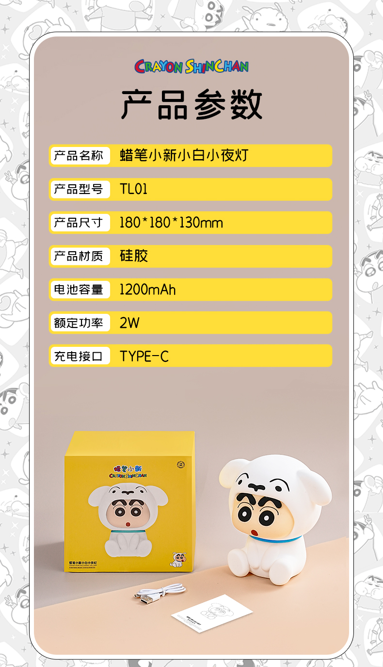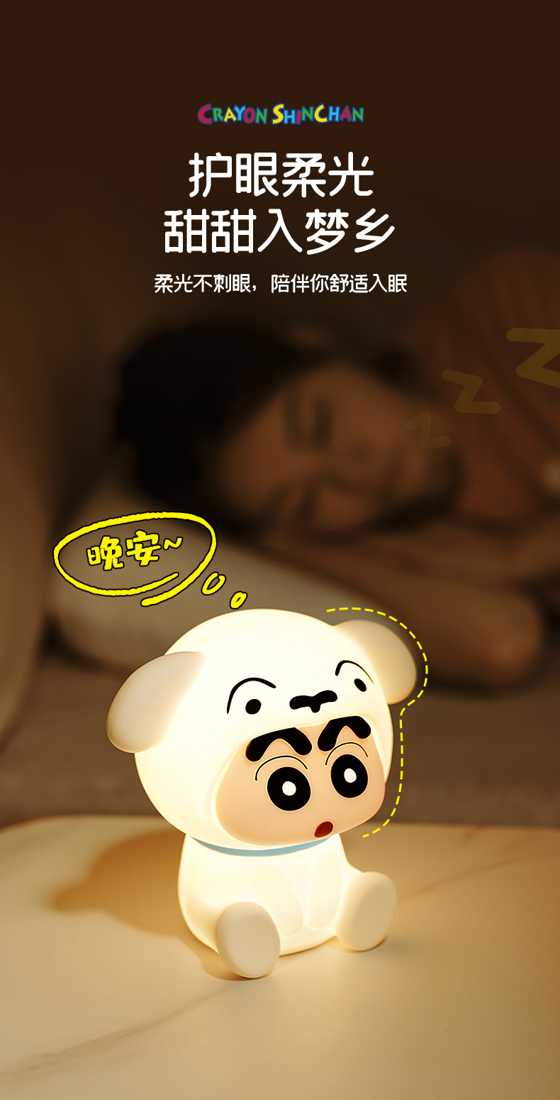 【樂融融】正版現貨 蠟筆小新 小白 小夜燈 拍拍燈 節能燈 床頭燈 睡眠燈 無需電池 附USB充電線1根 新之助