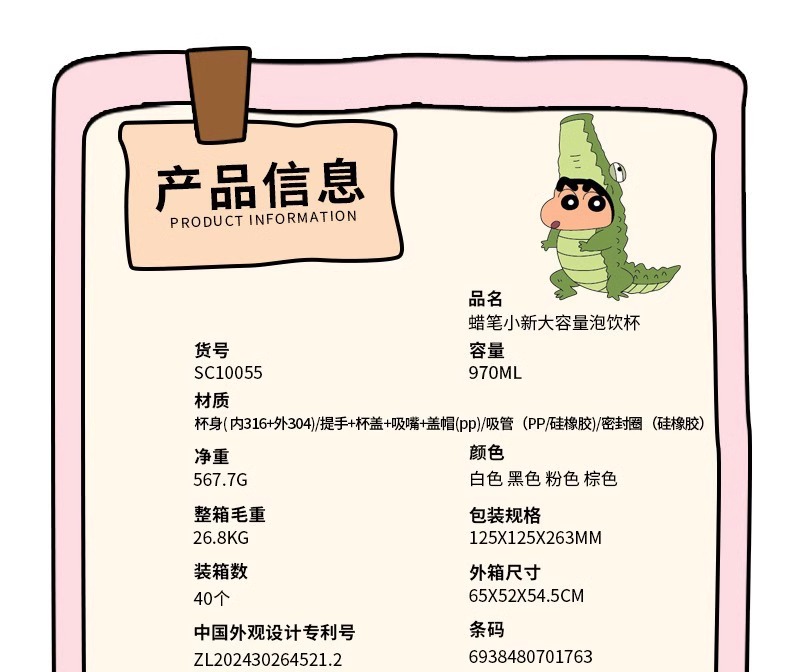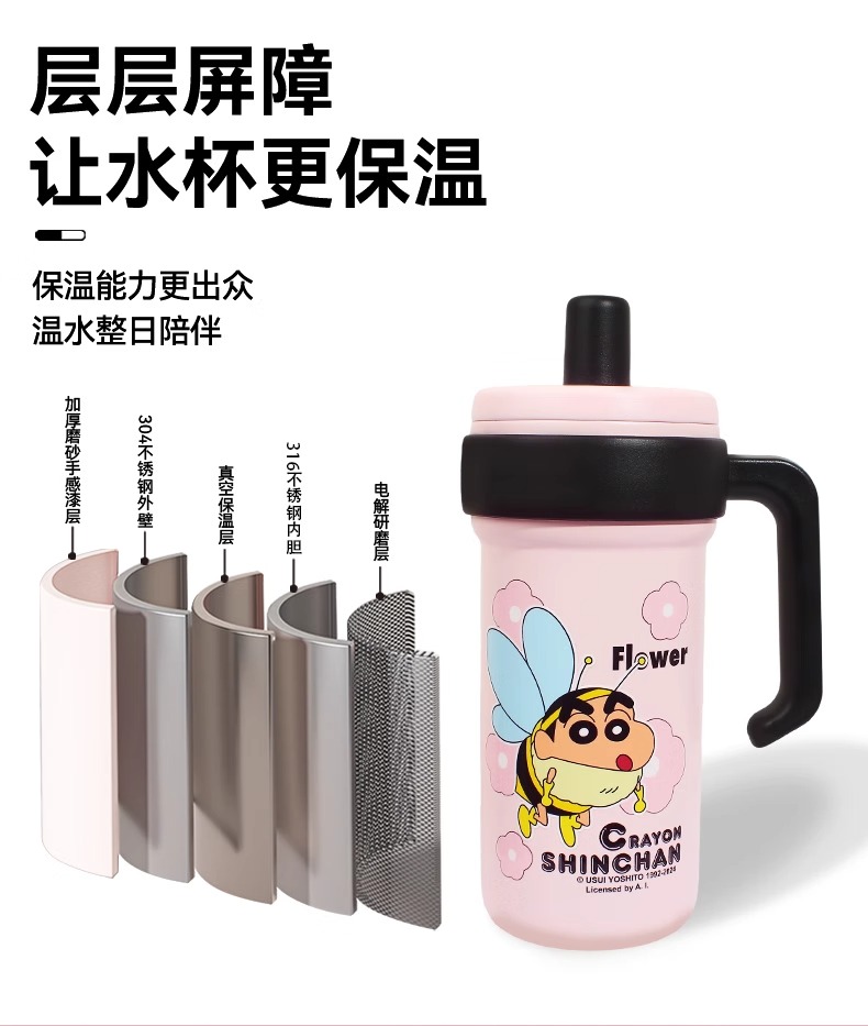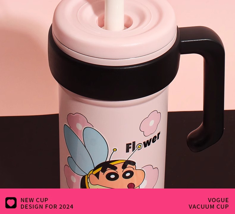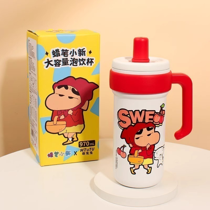【現貨】正版 蠟筆小新 冰霸杯 970ml 保溫杯 保溫瓶 帶把手 帶吸管 超高吸睛率 新之助 小白 萌兔兔