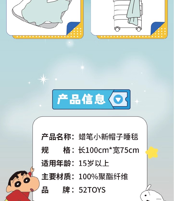 正版 蠟筆小新 帽子睡毯 毛毯 空調被 52toys 睡衣小新 高顏值 送禮 小白 新之助