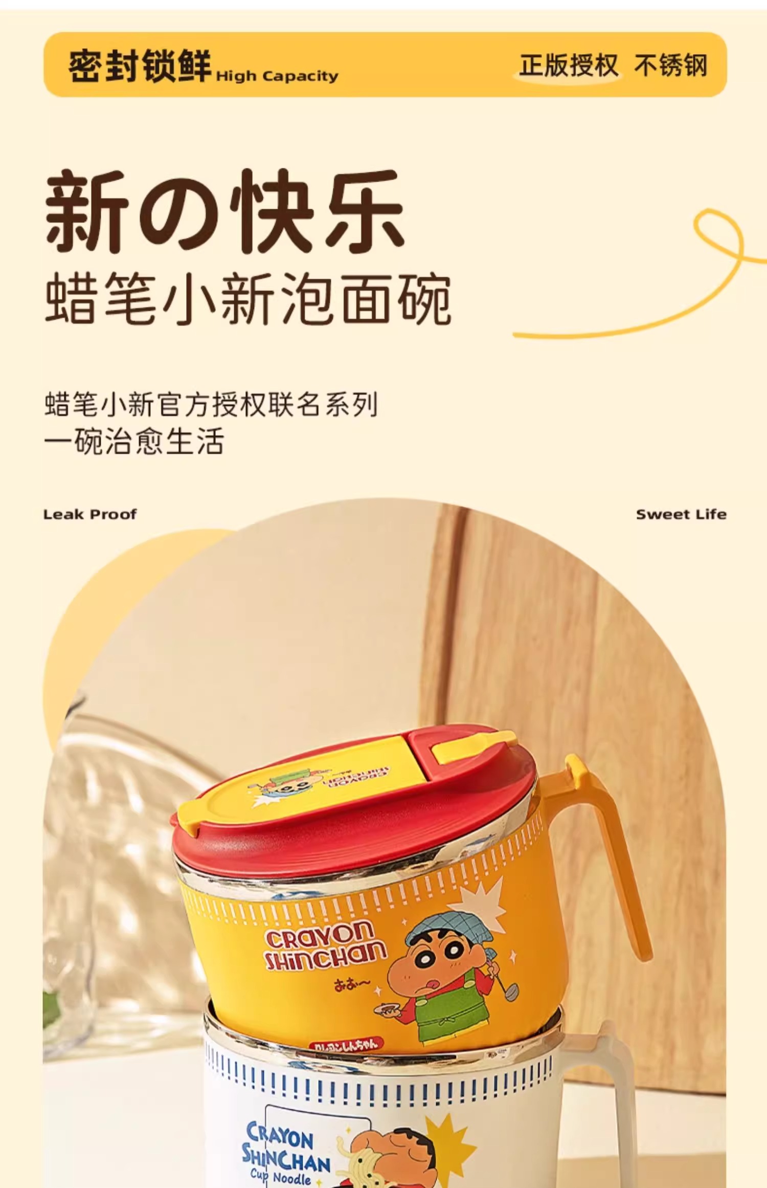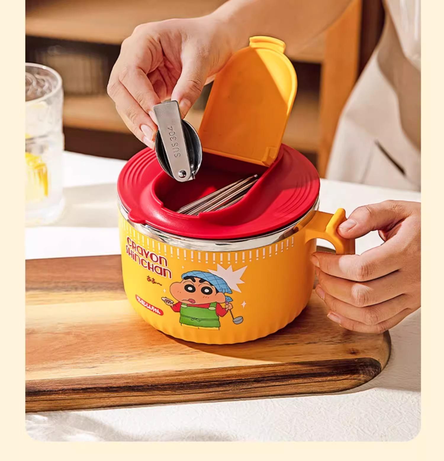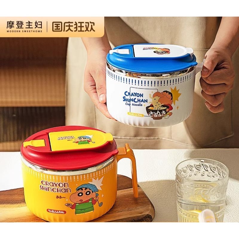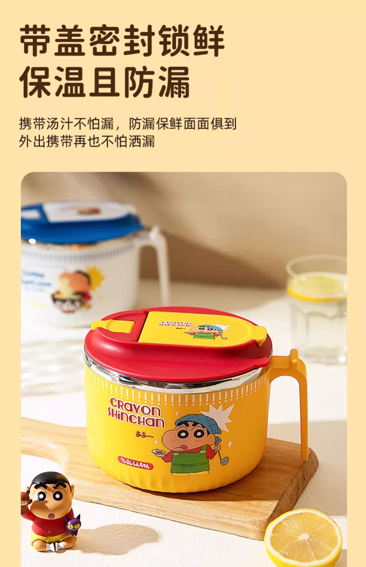 正版 蠟筆小新 不鏽鋼泡面碗 送折疊餐具 泡麵 面碗 便當碗 打包碗 拌麵碗 新之助 交換禮物 摩登主婦 防燙