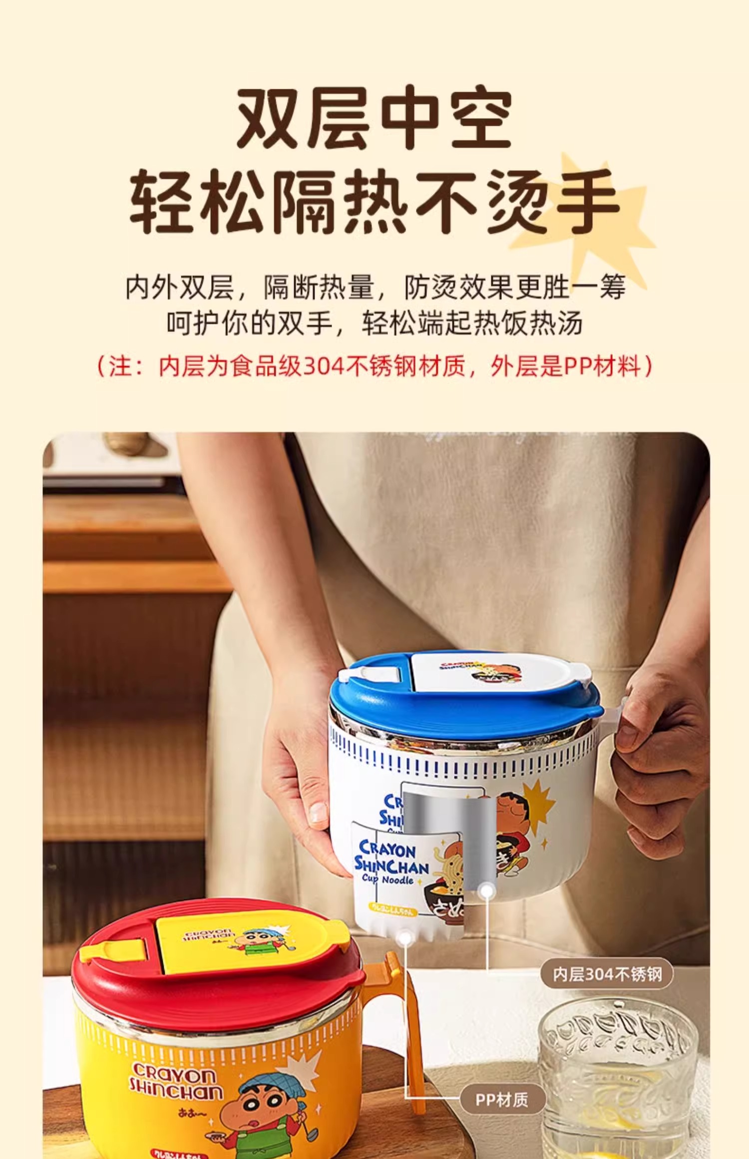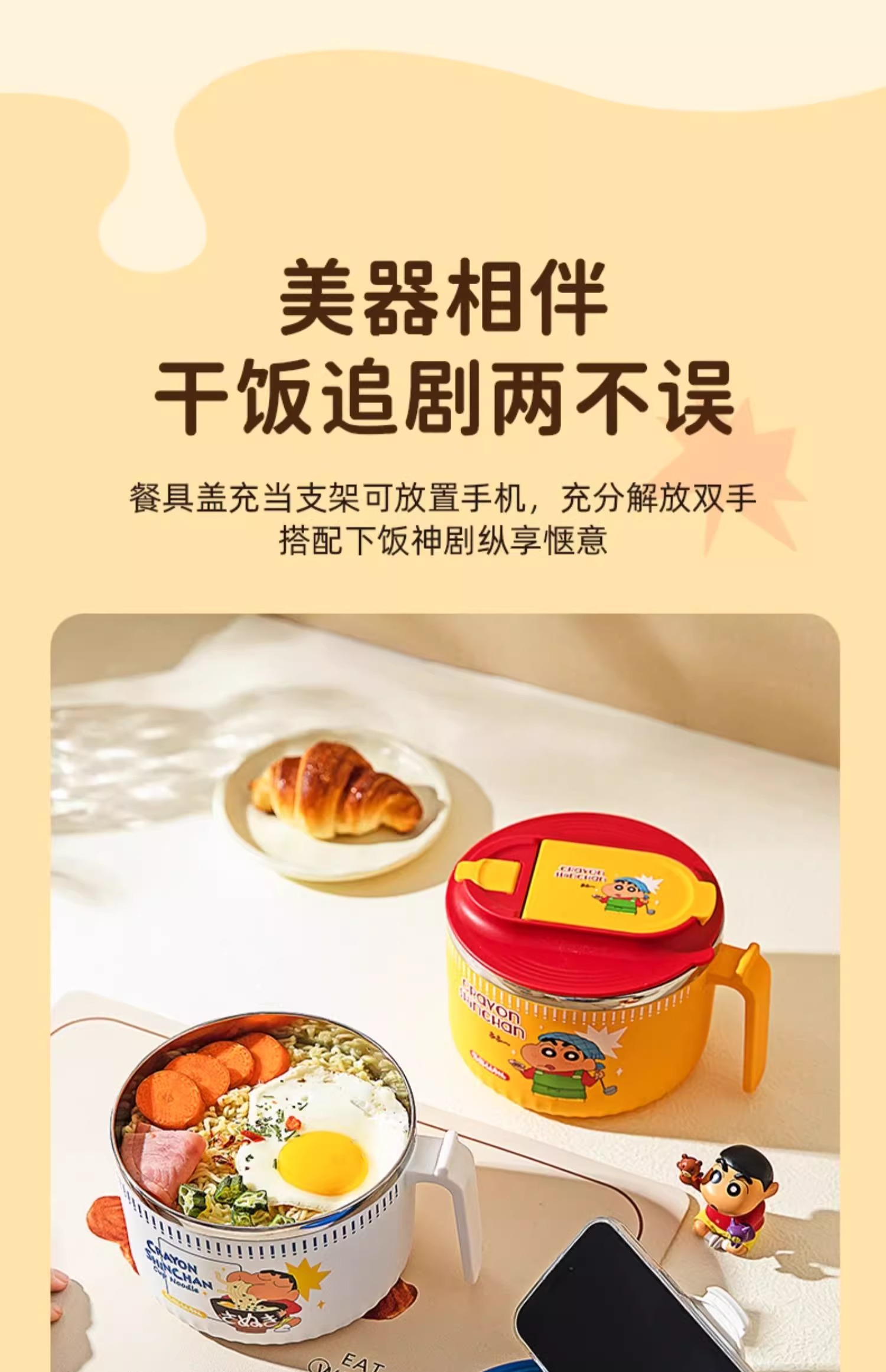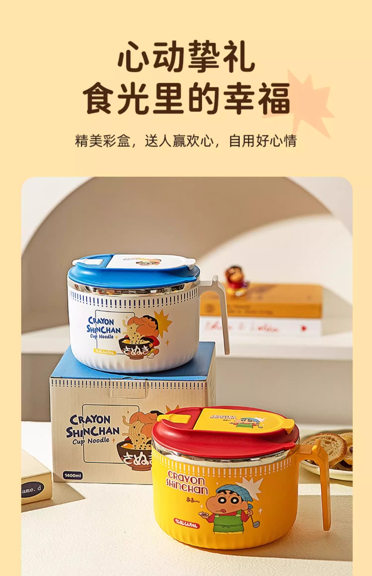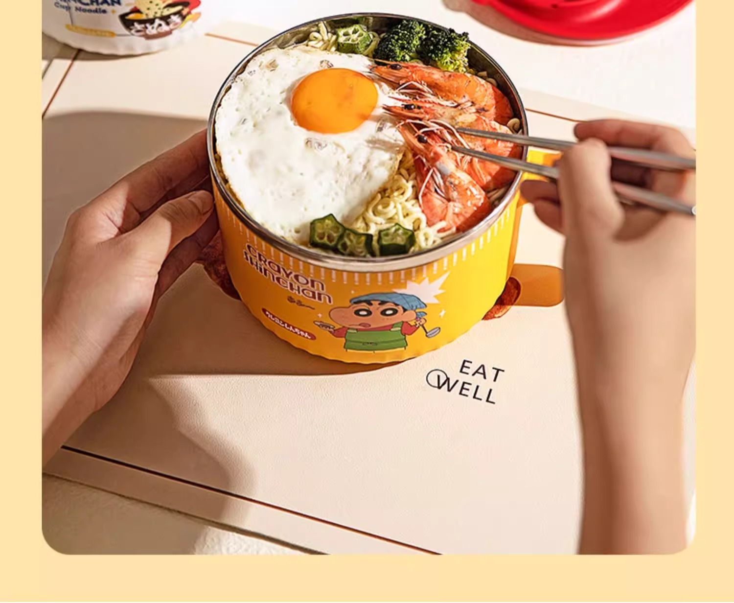 正版 蠟筆小新 不鏽鋼泡面碗 送折疊餐具 泡麵 面碗 便當碗 打包碗 拌麵碗 新之助 交換禮物 摩登主婦 防燙