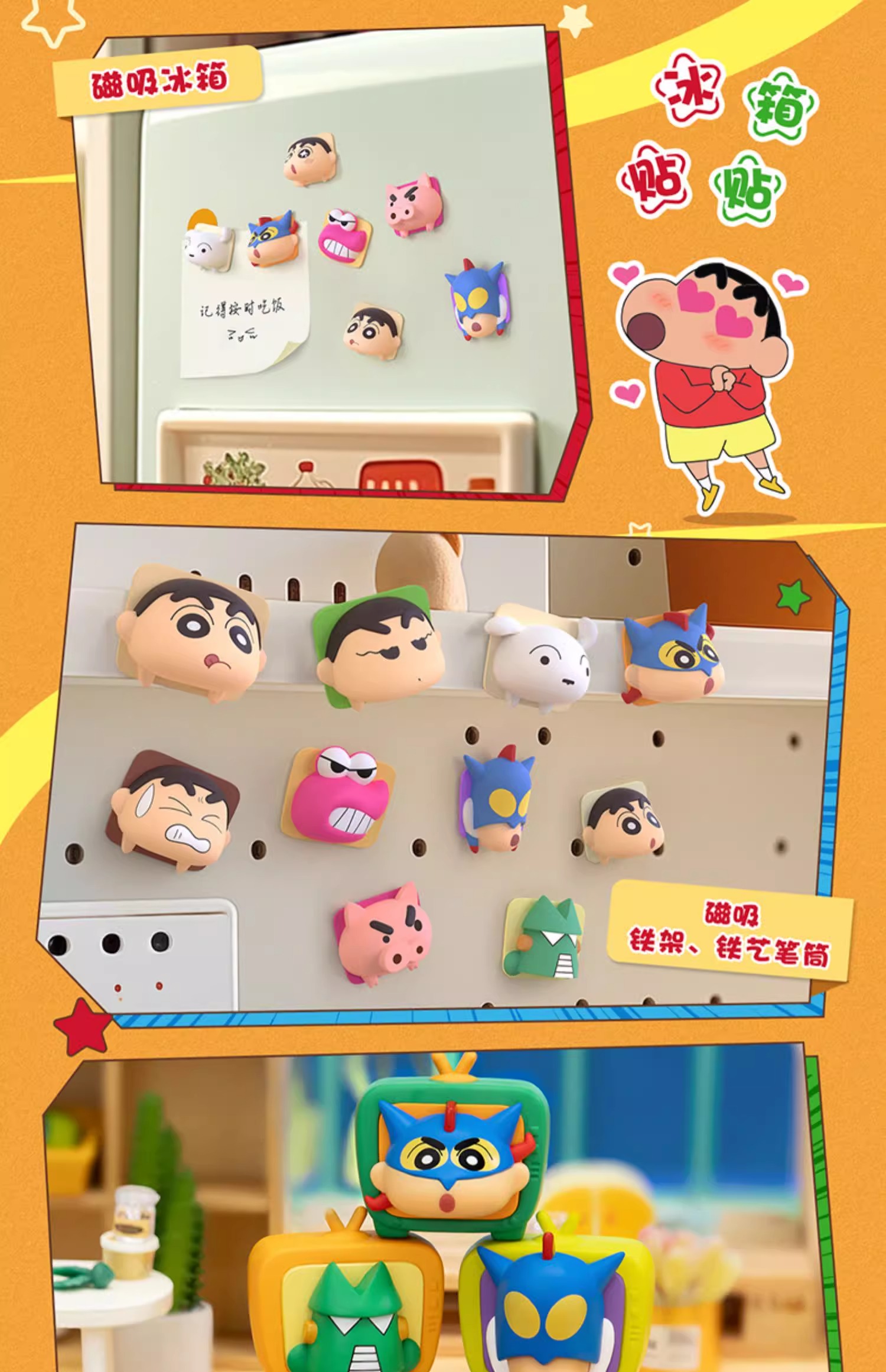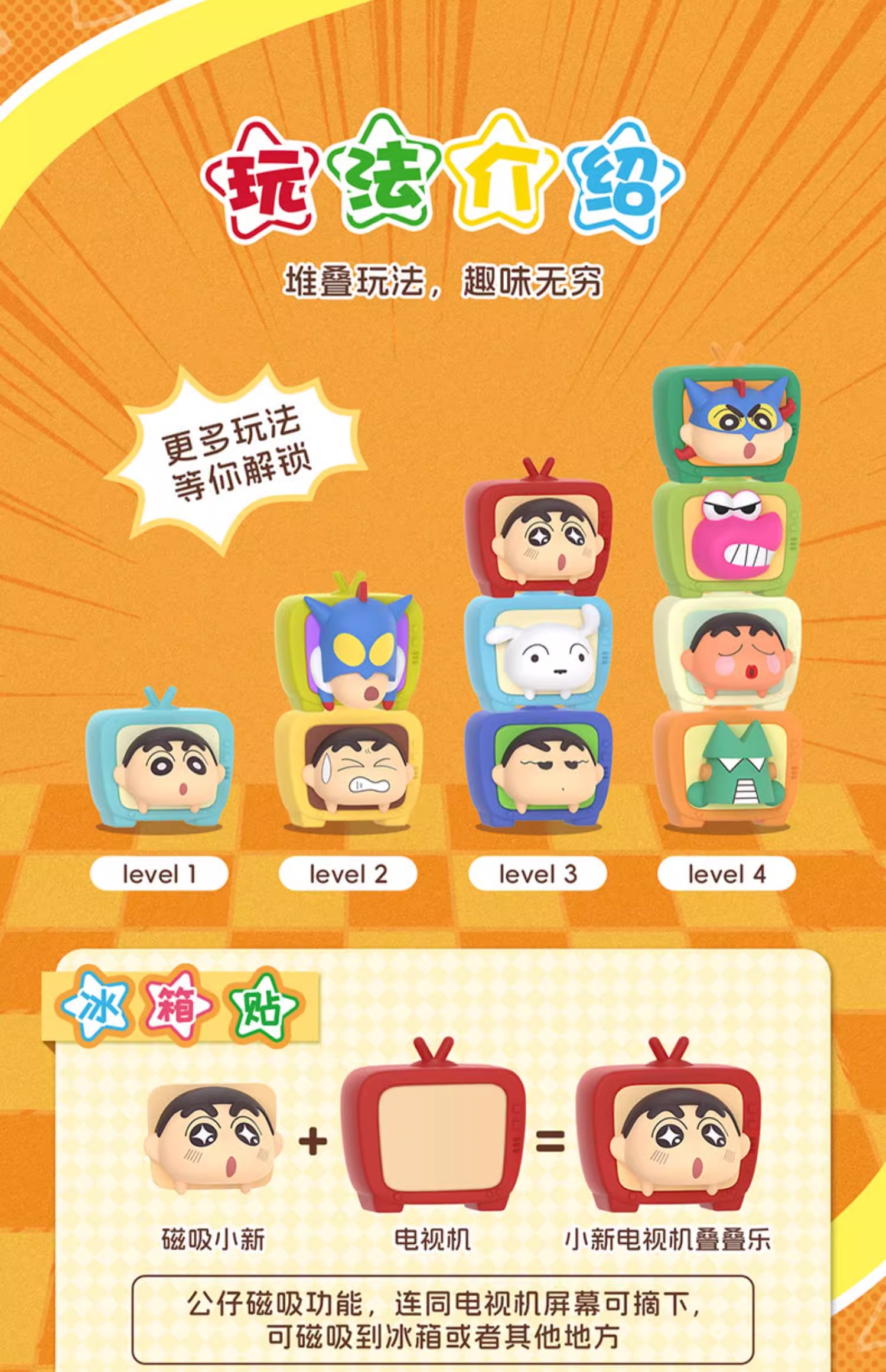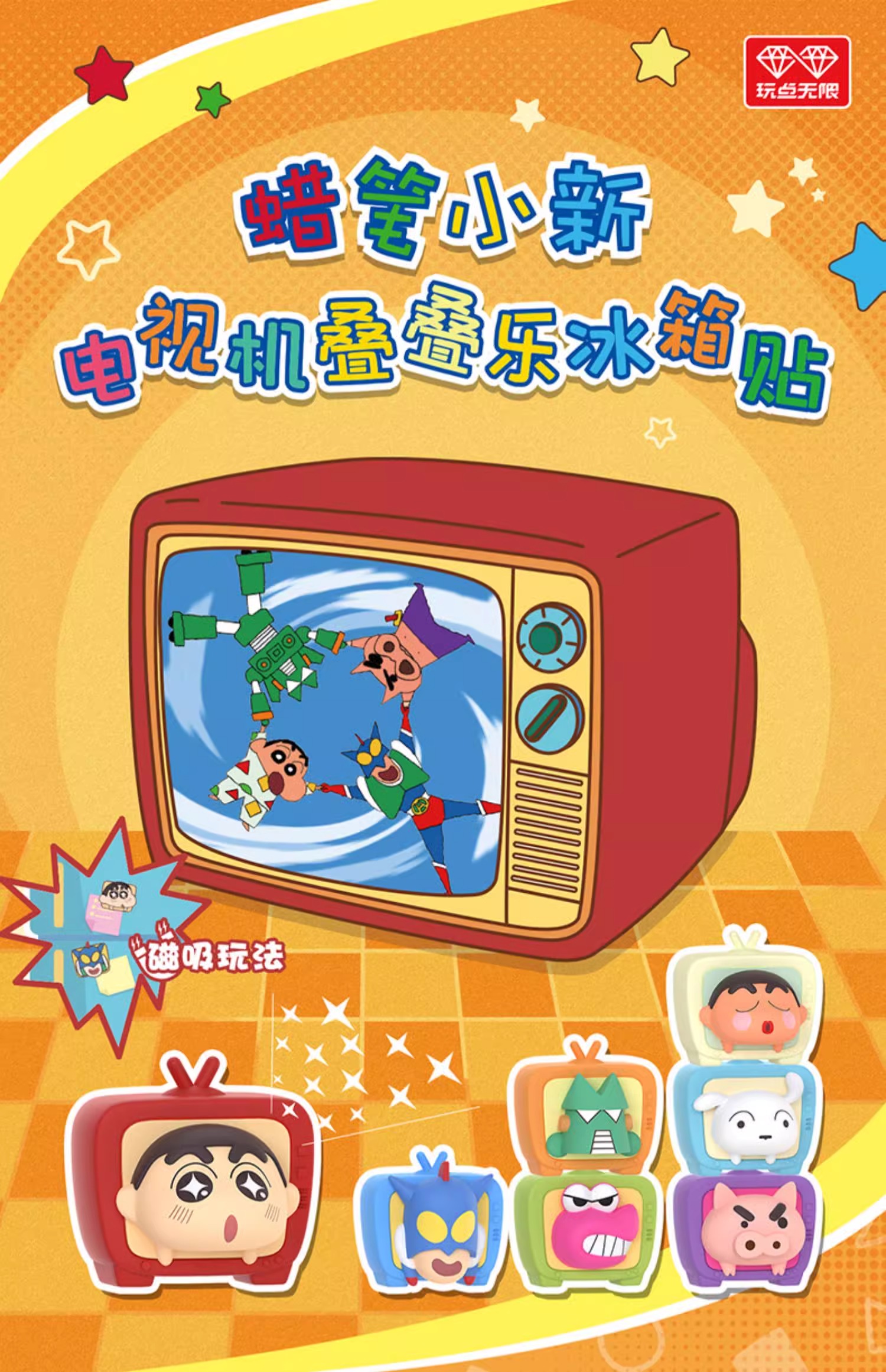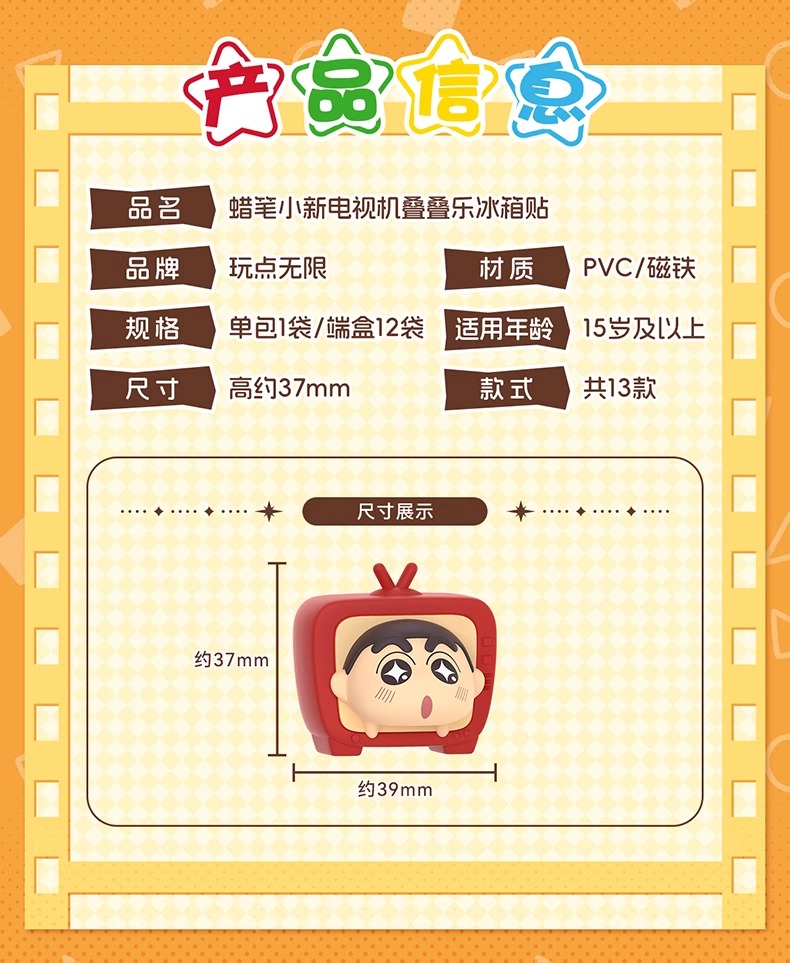 正版 蠟筆小新 電視機疊疊樂 冰箱貼 盲盒 磁力貼 磁吸貼 裝飾貼 新之助 動感超人 送禮 冰箱