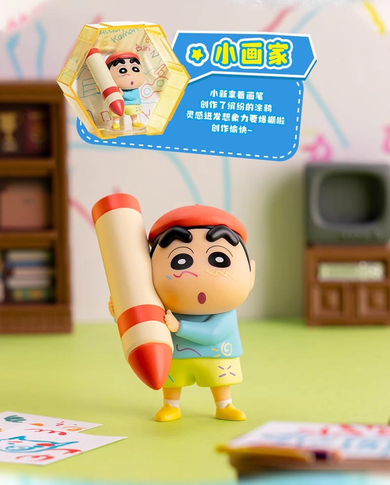 正版 蠟筆小新 盲盒 趣味六六系列 桌面擺件 書桌 裝飾 新之助 睡衣小新 雨衣小新 送禮 靈動創想