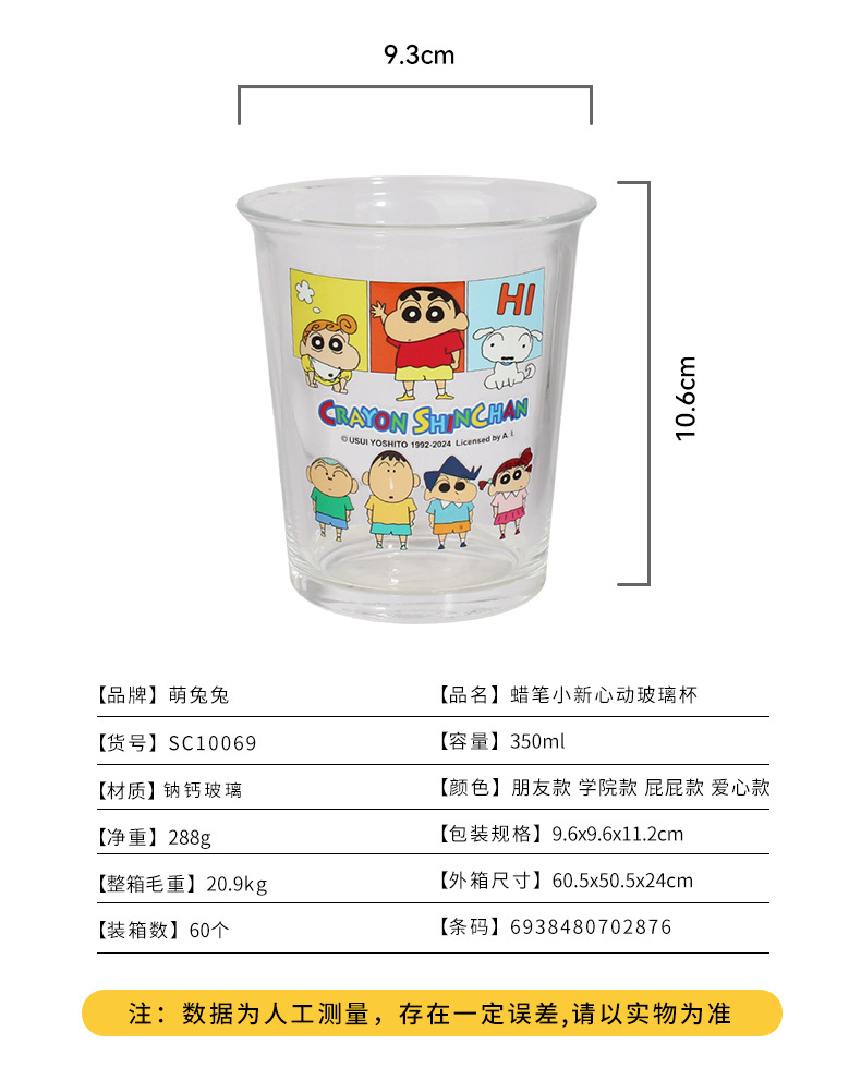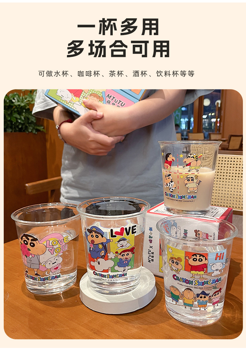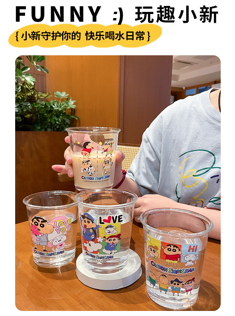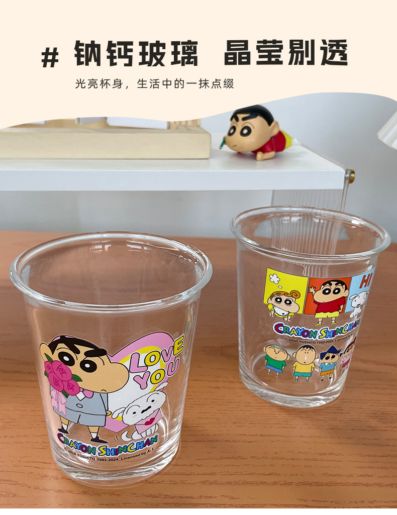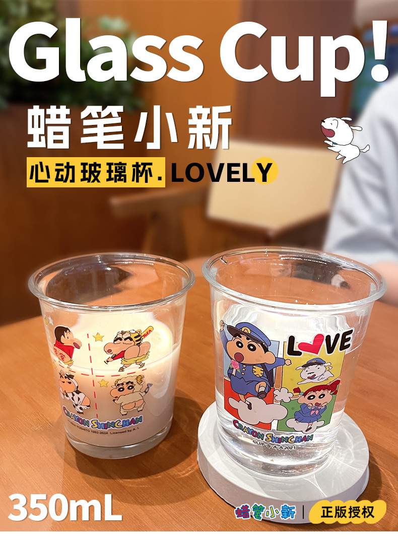 【現貨】正版 蠟筆小新 心動玻璃杯 350ml 水杯 茶杯 咖啡杯 易清洗 飲料杯 牛奶杯 送禮 新之助 萌兔兔