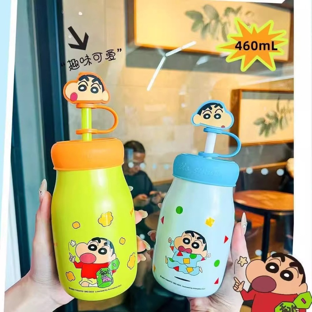 【樂融融】正版現貨 蠟筆小新 果汁吸管杯 辦公水杯 牛奶杯 送禮 新之助 萌兔兔