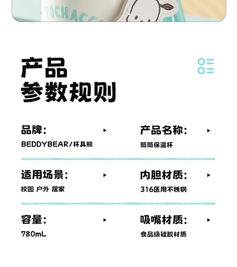 【杯具熊】正版 三麗鷗 筒筒保溫杯款式 帕恰狗 保溫杯 保溫瓶 水杯 水壺 780ml 韓國品牌 送禮