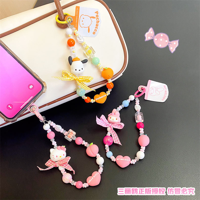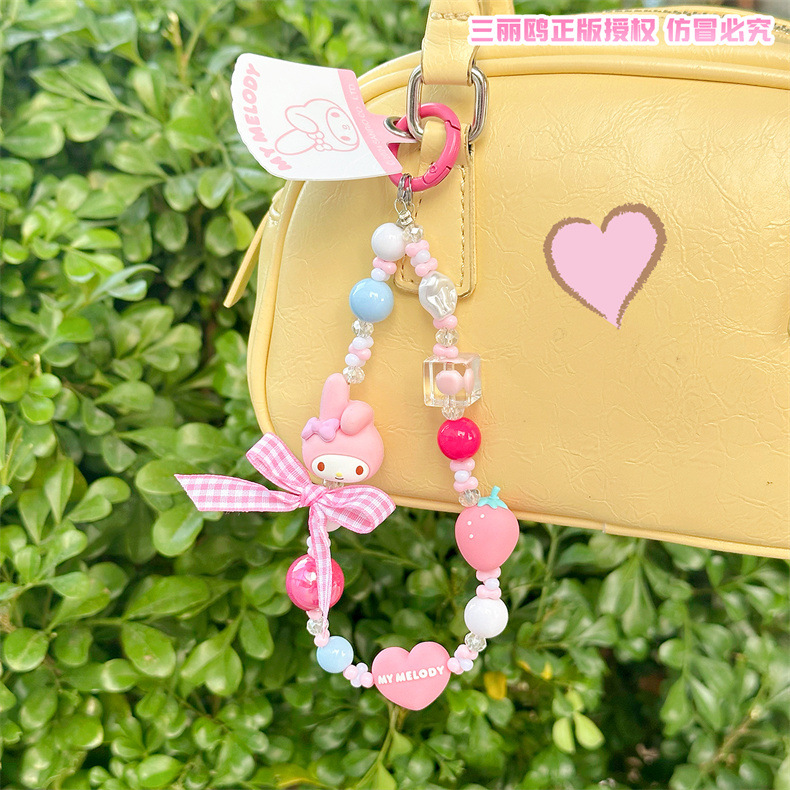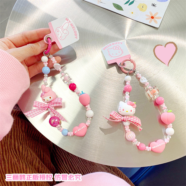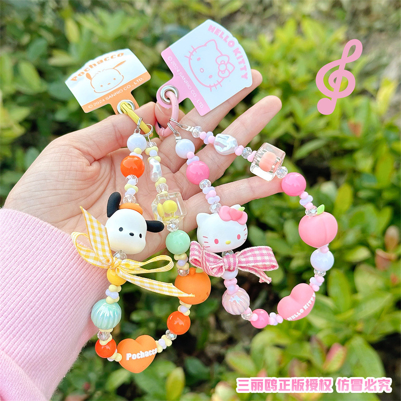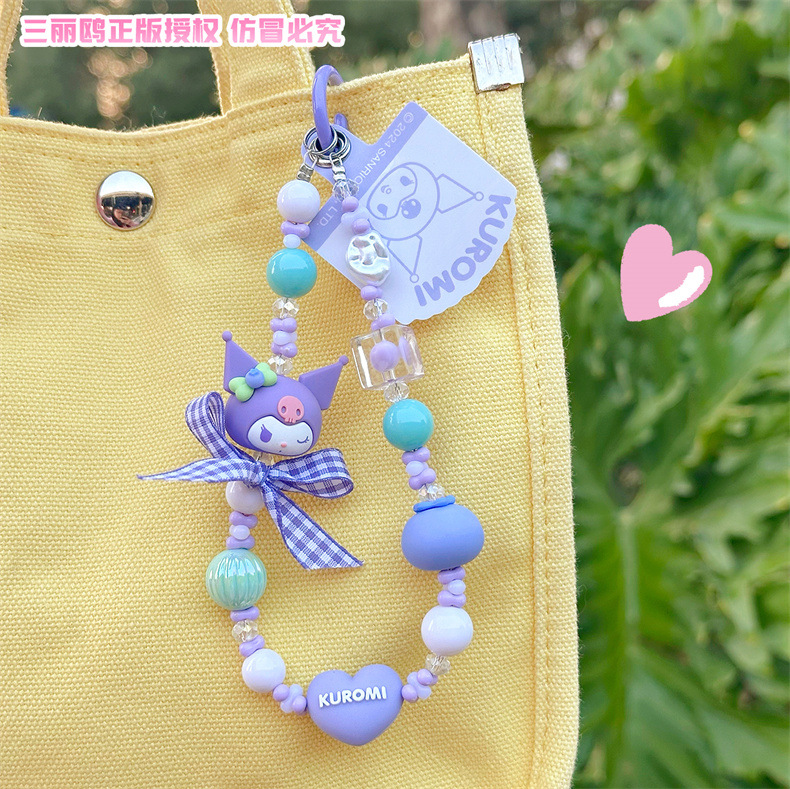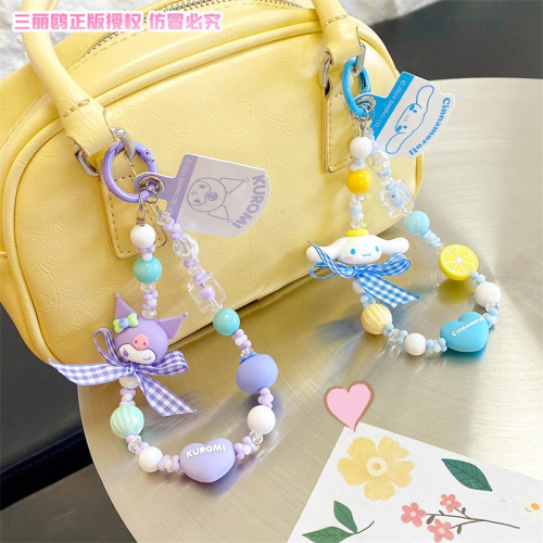 【冉紅】正版 三麗鷗 凯蒂猫 庫洛米鑰匙扣 掛件 玉桂狗 手机壳链条 手绘串珠掛飾 送禮