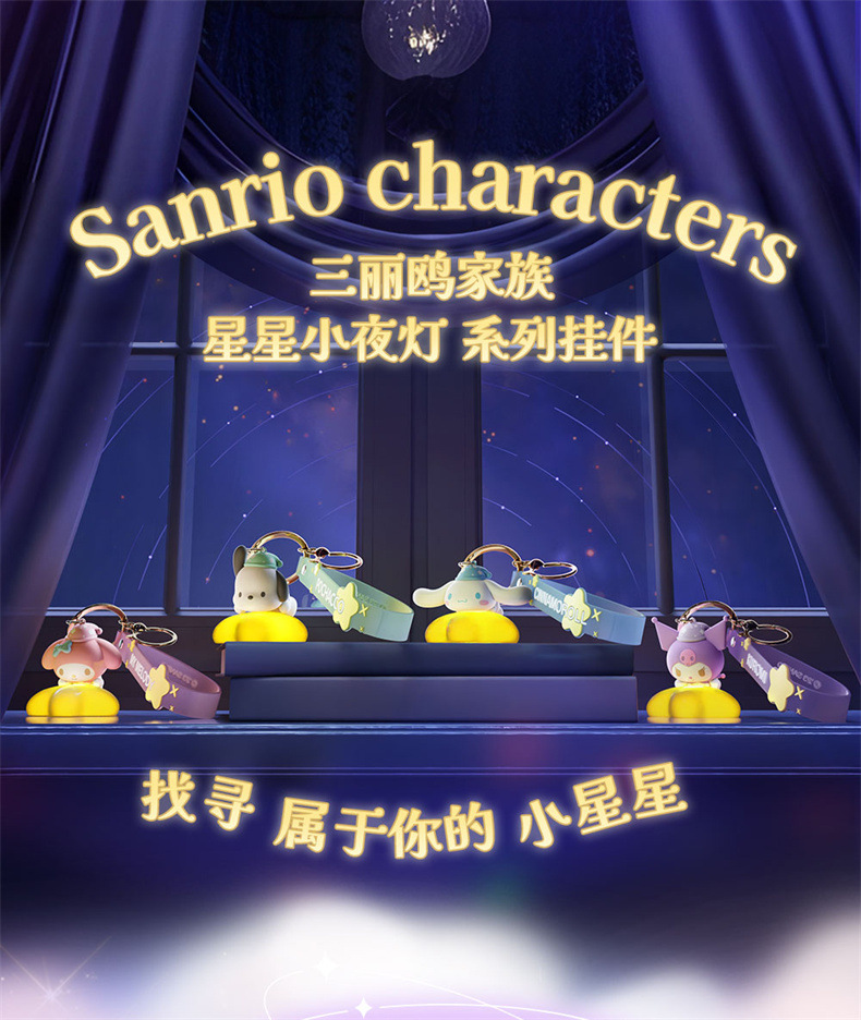 【冉紅】正版 三麗鷗 家族星星小夜灯鑰匙扣 發光小夜燈 创意书包小掛件 送禮