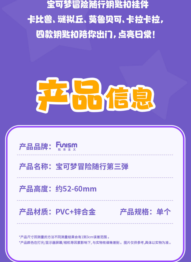 【玩樂主義】正版 寶可夢 冒险随行鑰匙扣 卡比兽 谜拟丘 可爱卡通公仔 情侣包包掛件 吊飾 送禮 冉紅