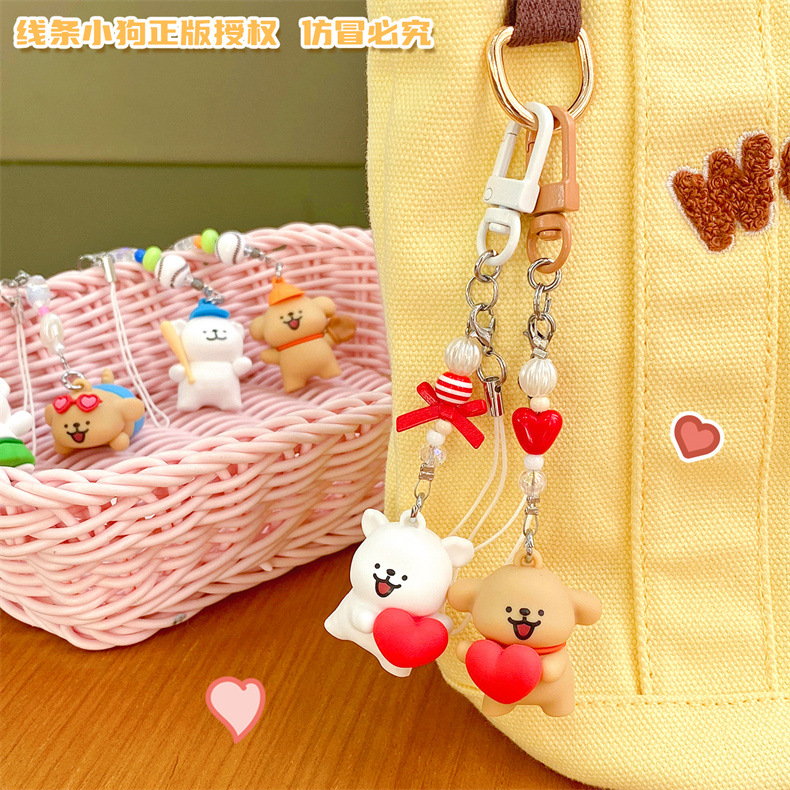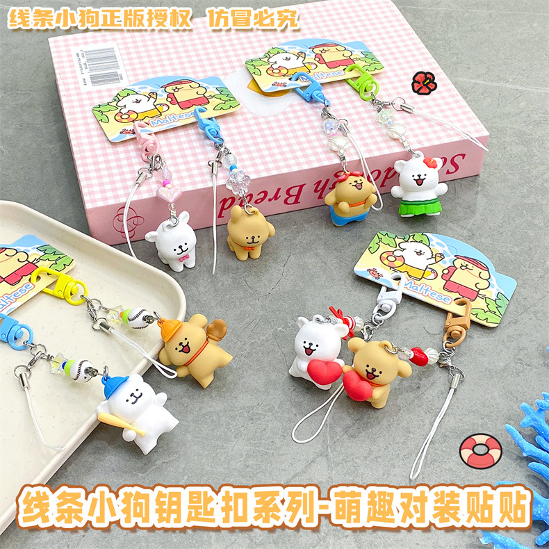 【冉紅】正版 線條小狗 萌趣对装贴贴系列 鑰匙扣 掛件 书包掛飾 鑰匙鏈 吊飾 送禮