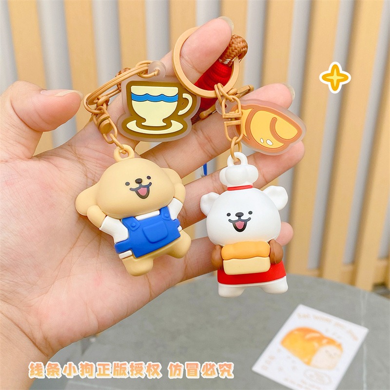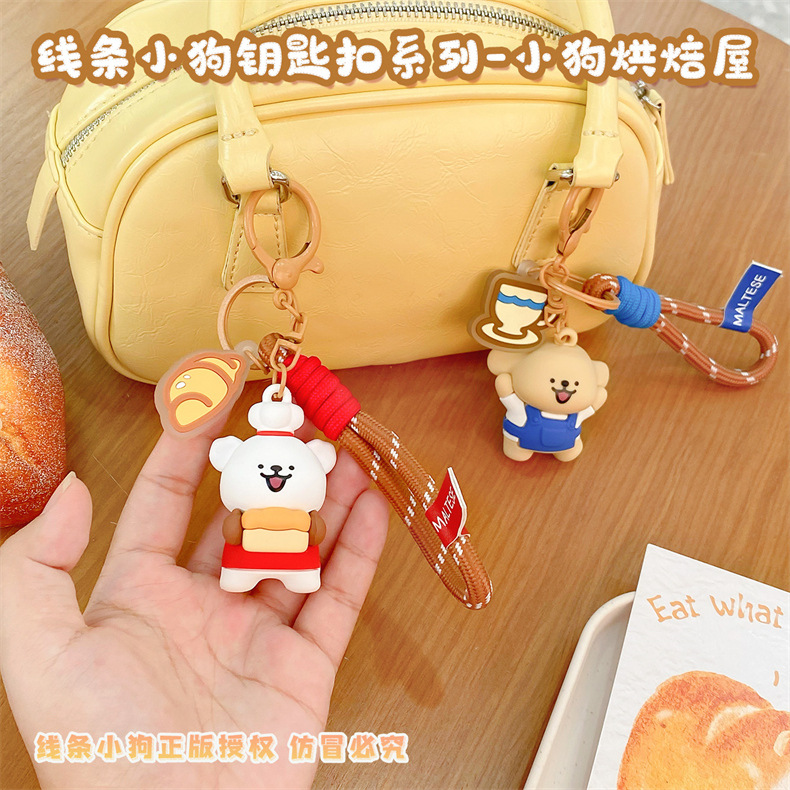 【冉紅】正版 線條小狗 烘培屋系列 创意鑰匙扣 新款情侣鑰匙扣 可爱小掛件 包包掛飾 吊飾 送禮