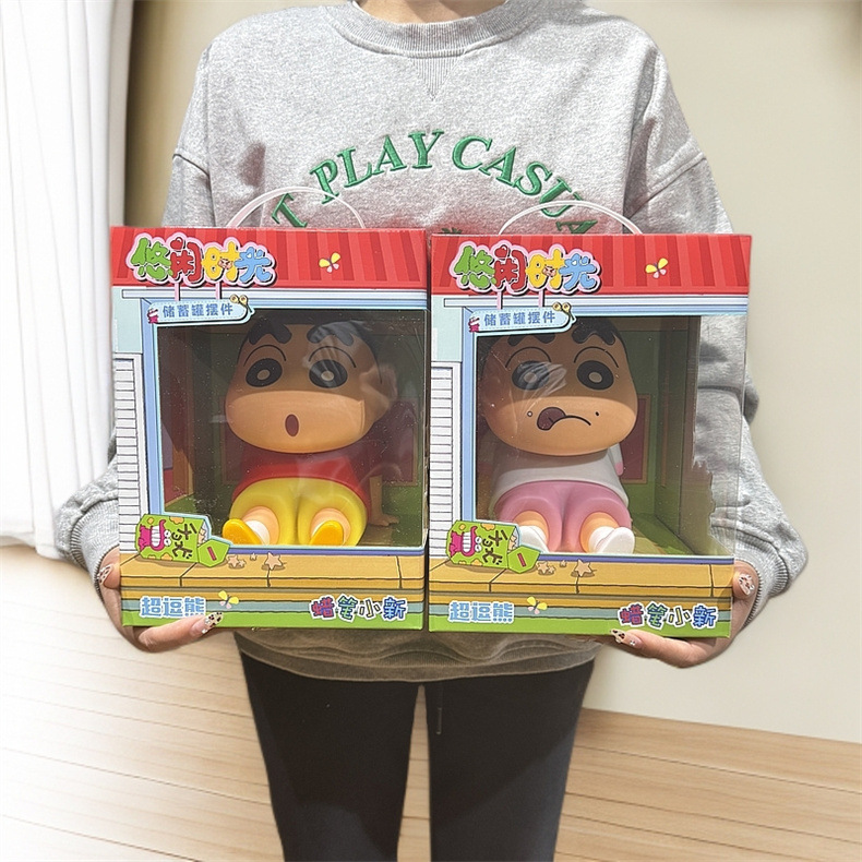 【冉紅】正版 蠟筆小新 悠闲时光系列 存钱罐 可存可取 可爱公仔擺件 卡通生日礼物 送禮