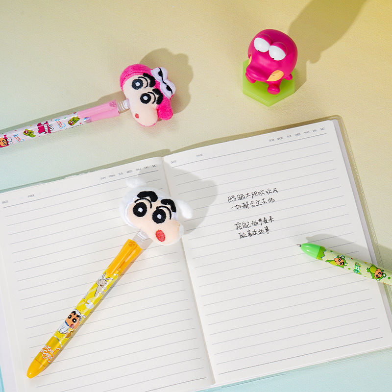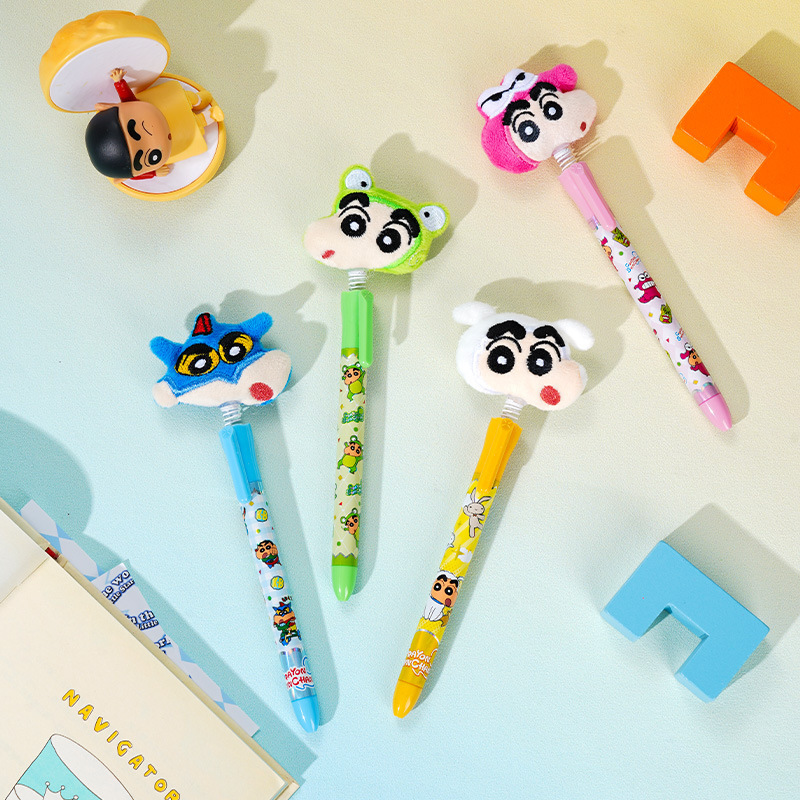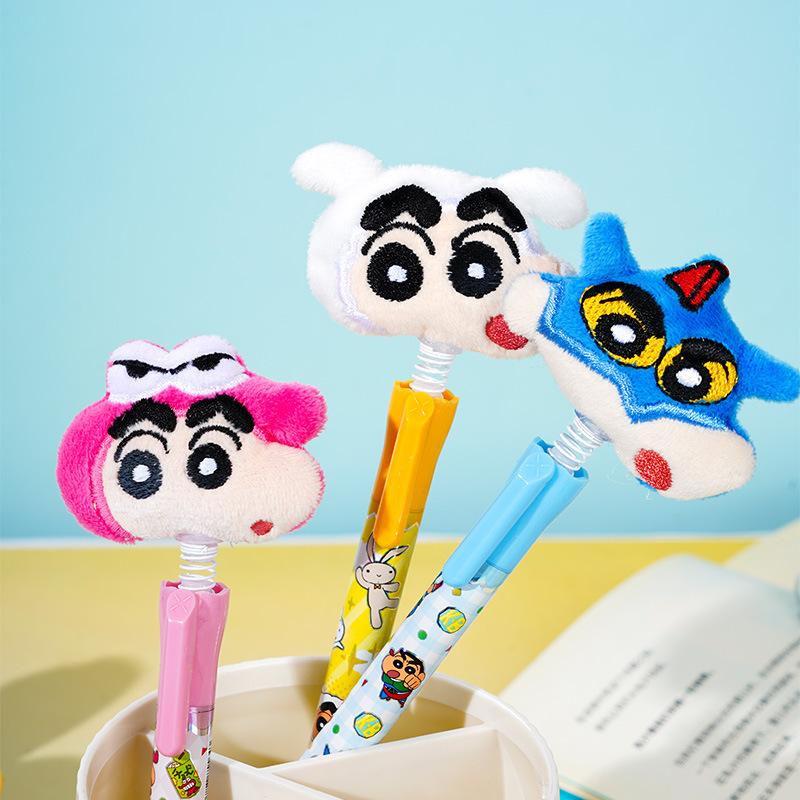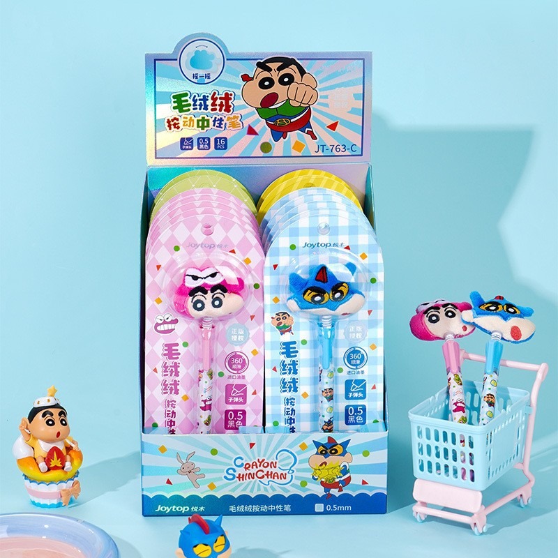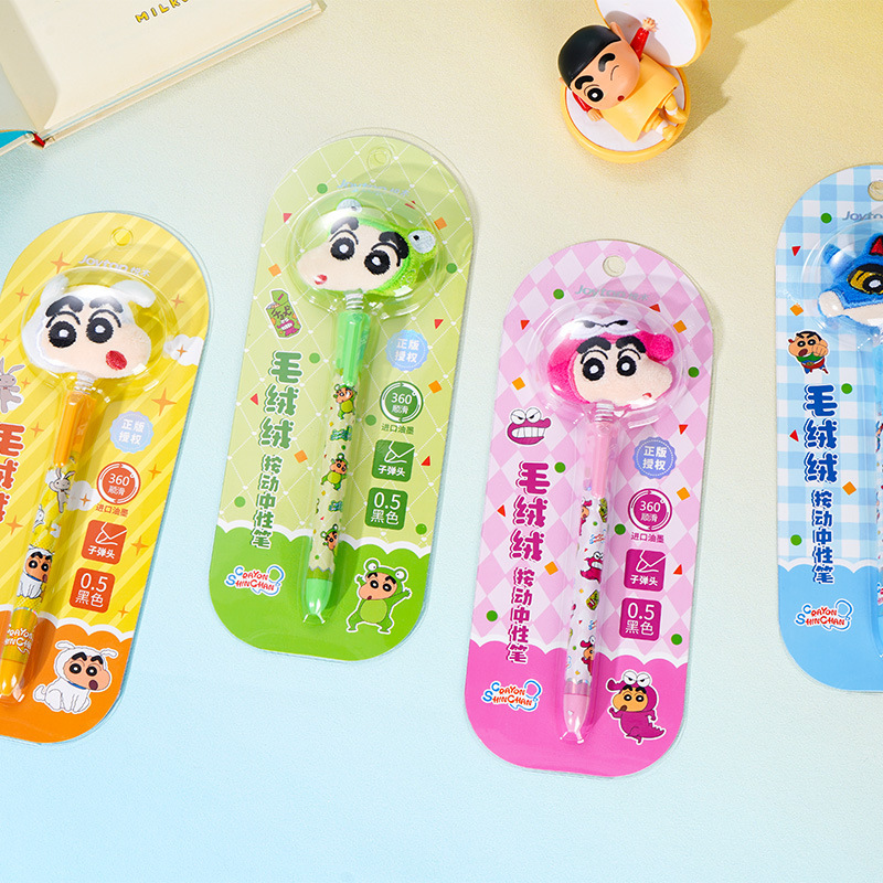 【Joytop悦木】蠟筆小新-摇摇毛绒绒头中性笔单支吸塑插盒装 0.5黑笔 送禮