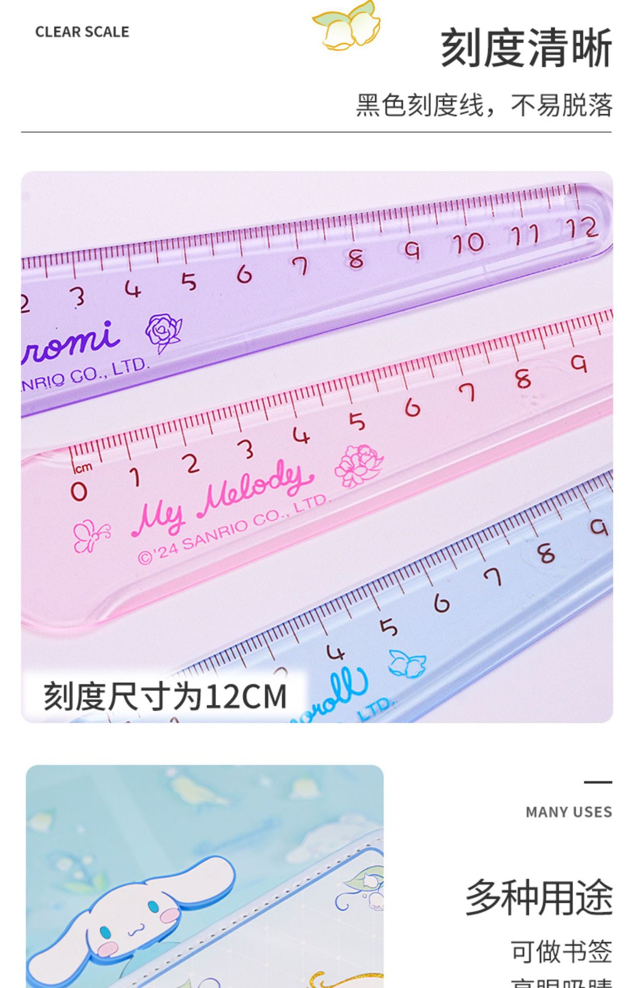 【Joytop悦木】三麗鷗 魔法花园-软胶造型尺 三麗鷗卡通透明学生测量工具尺 送禮