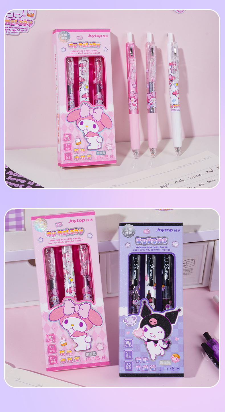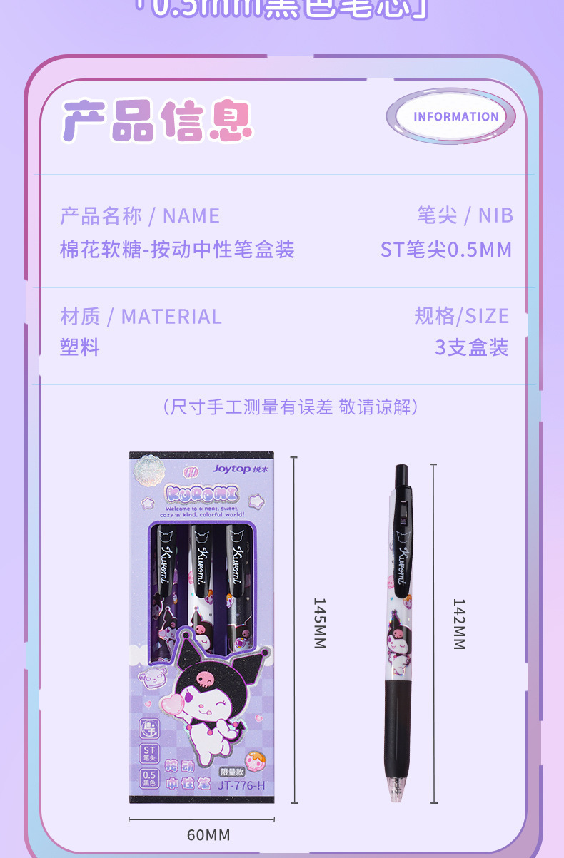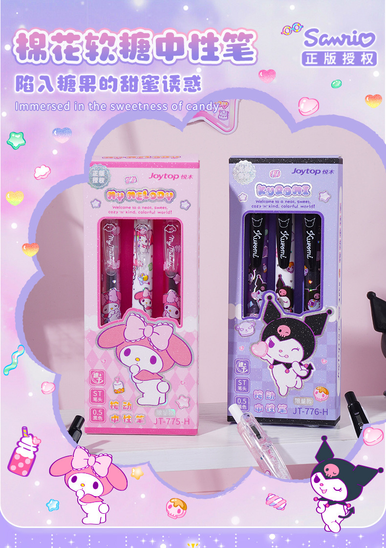 【Joytop悦木】三麗鷗 棉花软糖-庫洛米按动中性筆 可爱学生黑筆速干 刷题筆 送禮