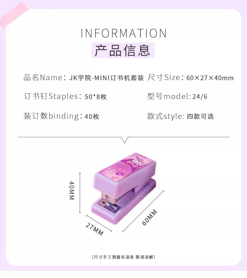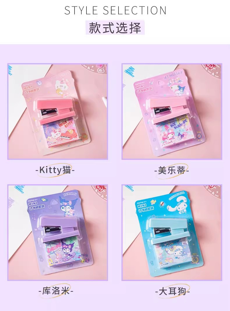 【Joytop悦木】三麗鷗 JK学院-MINI订书机套装 干净 创意 卡通 学生文具 送禮
