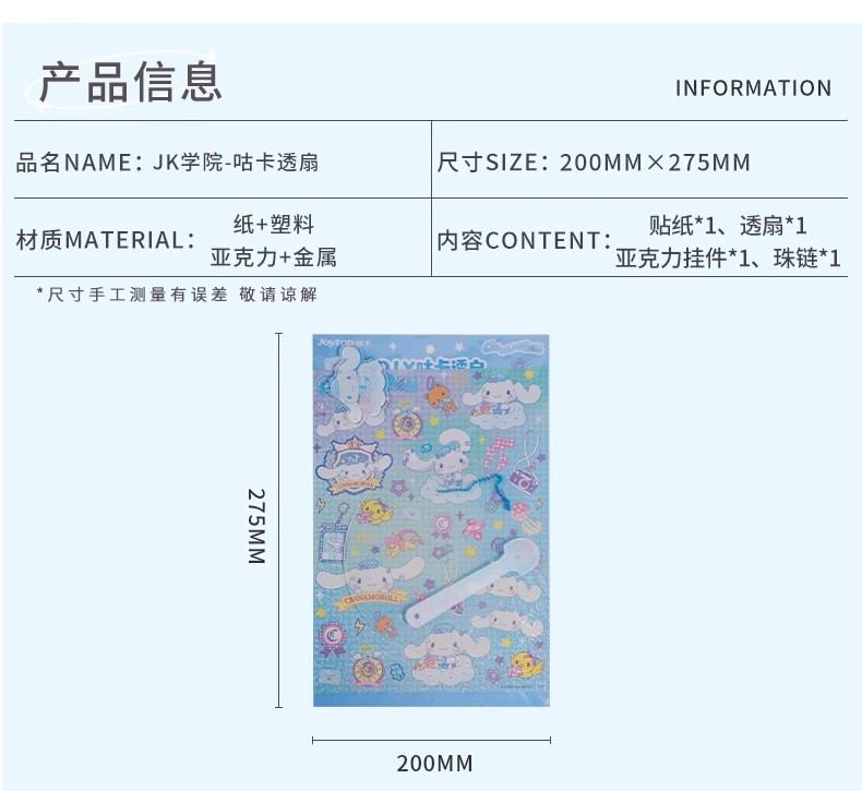 【Joytop悦木】三麗鷗 JK学院-咕卡透扇贴纸 可爱 迷你 创意贴纸 卡通 送禮
