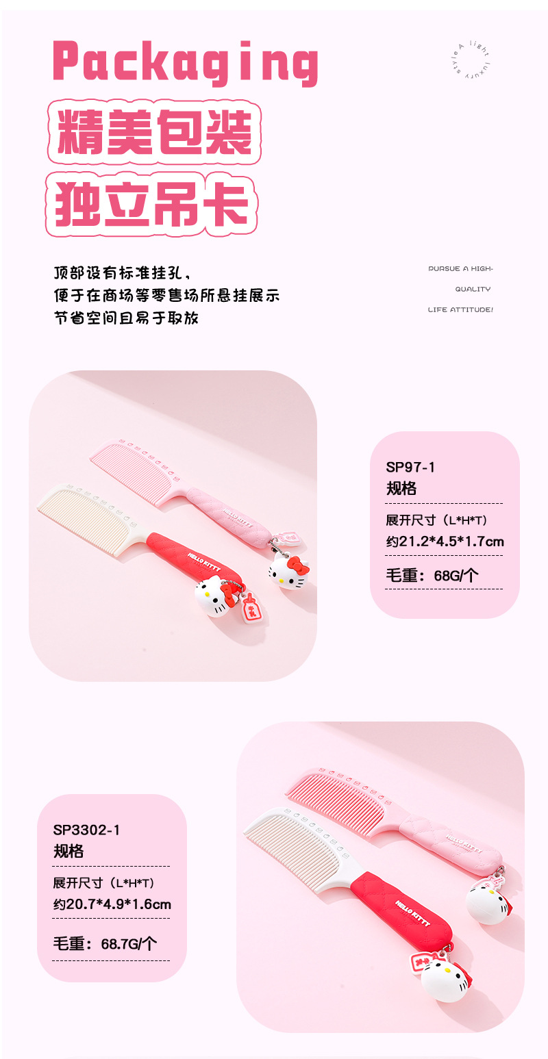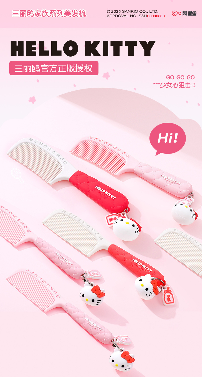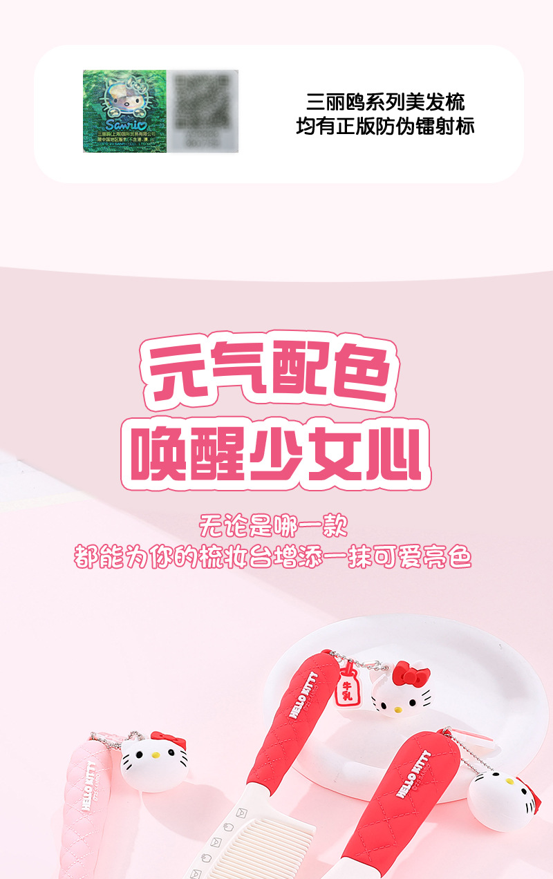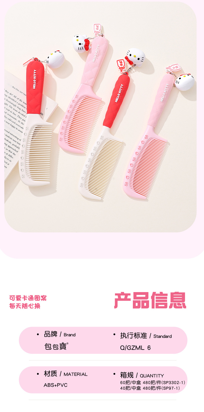 【三麗鷗&包包寶】正版 凱蒂貓硅胶头普通梳 美髮梳 女士家用长髮梳 少女心高颜值梳子 送禮