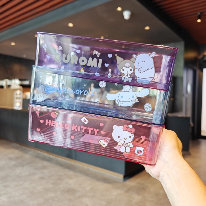 【三麗鷗&塑業】正版 长方形文具杂物盒 玉桂狗 庫洛米 凱蒂貓 塑料透明盒 桌面收纳盒子 送禮