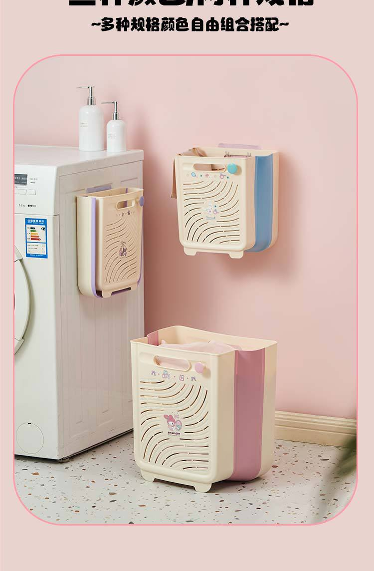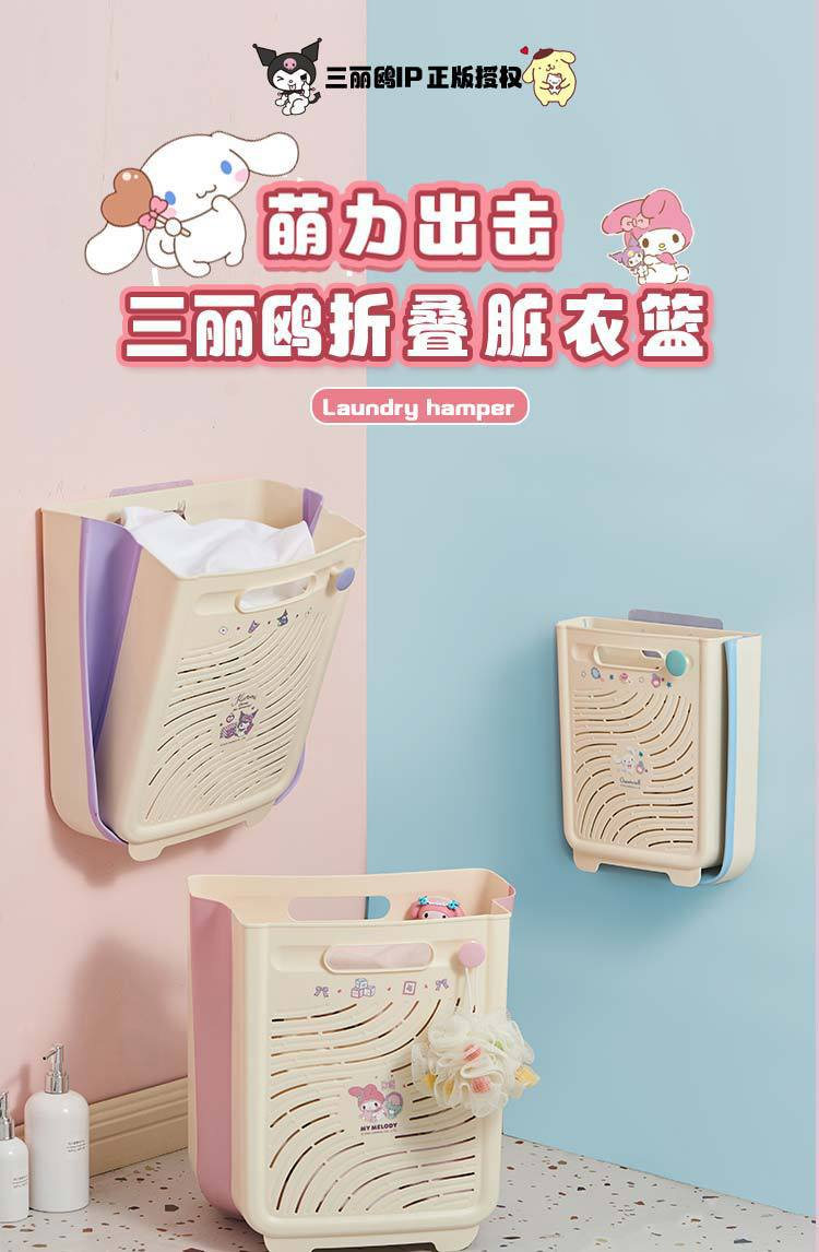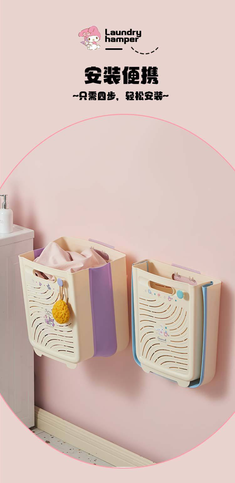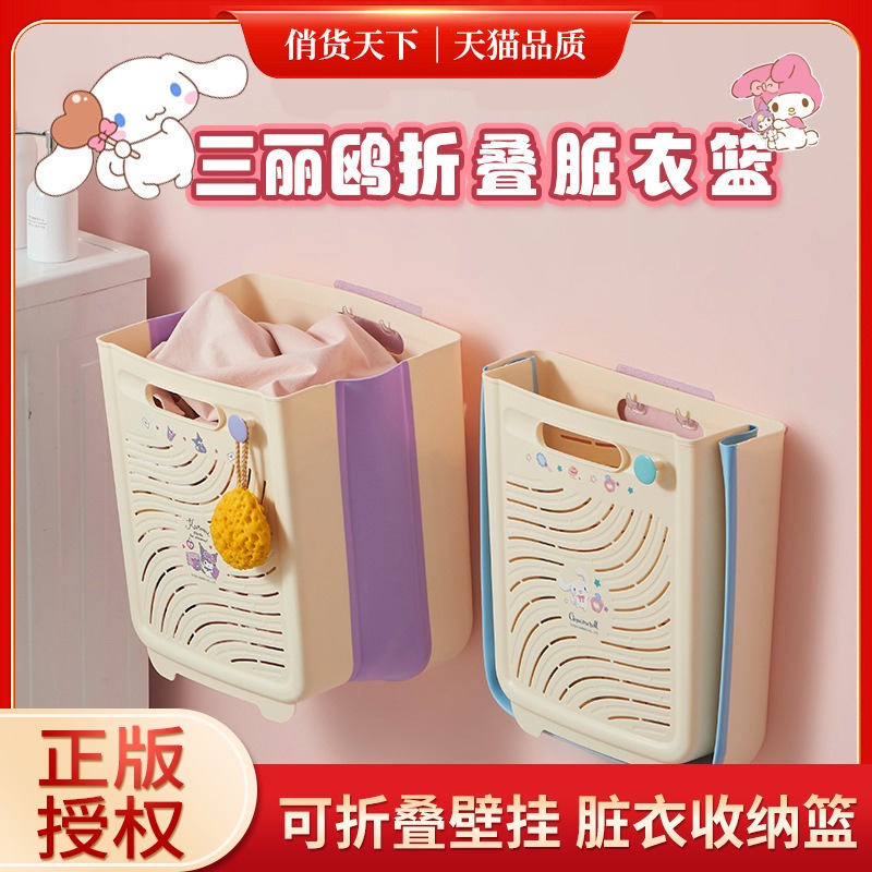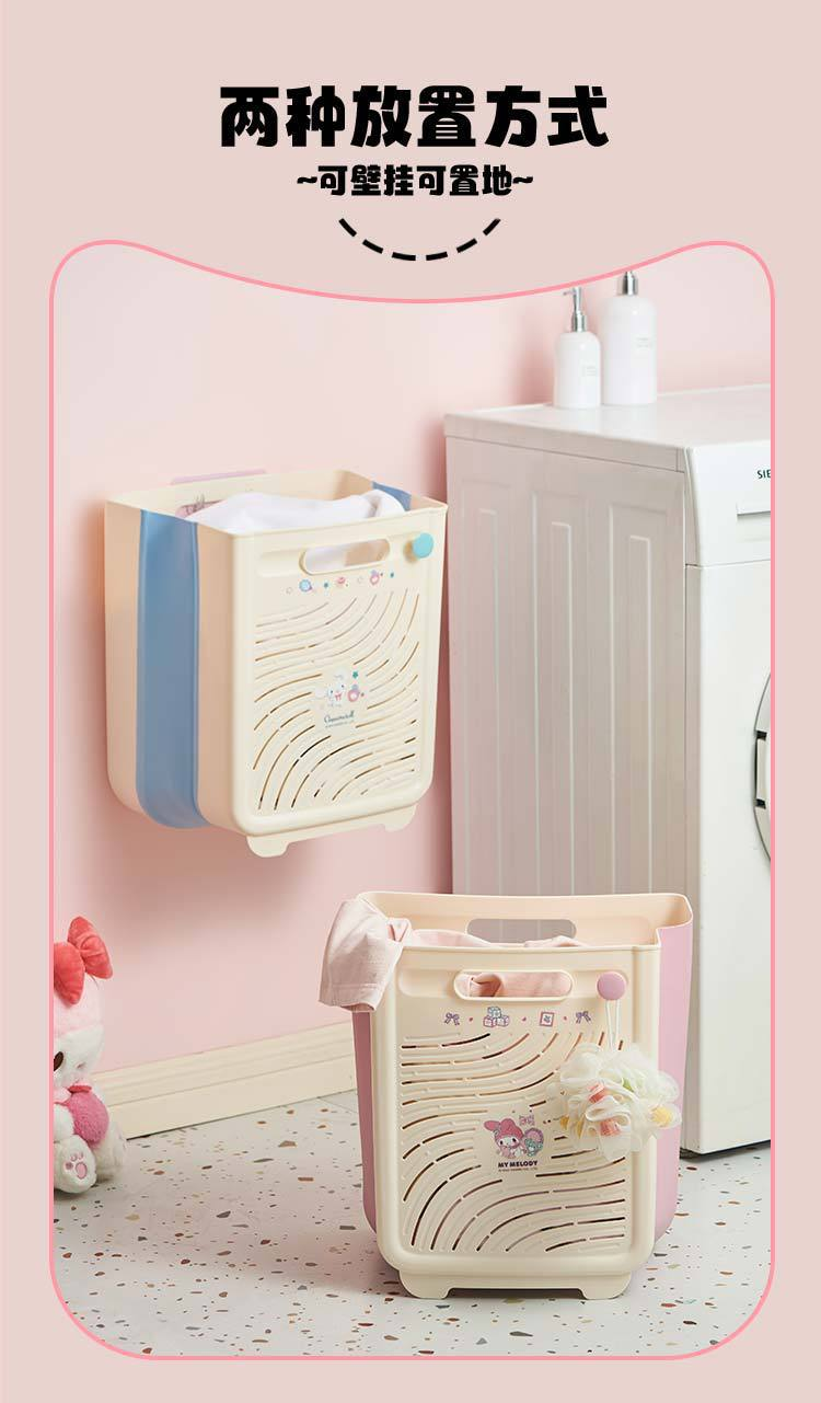 【三麗鷗&塑業】正版 脏衣篓 家用可折叠 加厚洗衣籃 壁挂落地两用衣服收纳筐大号 送禮