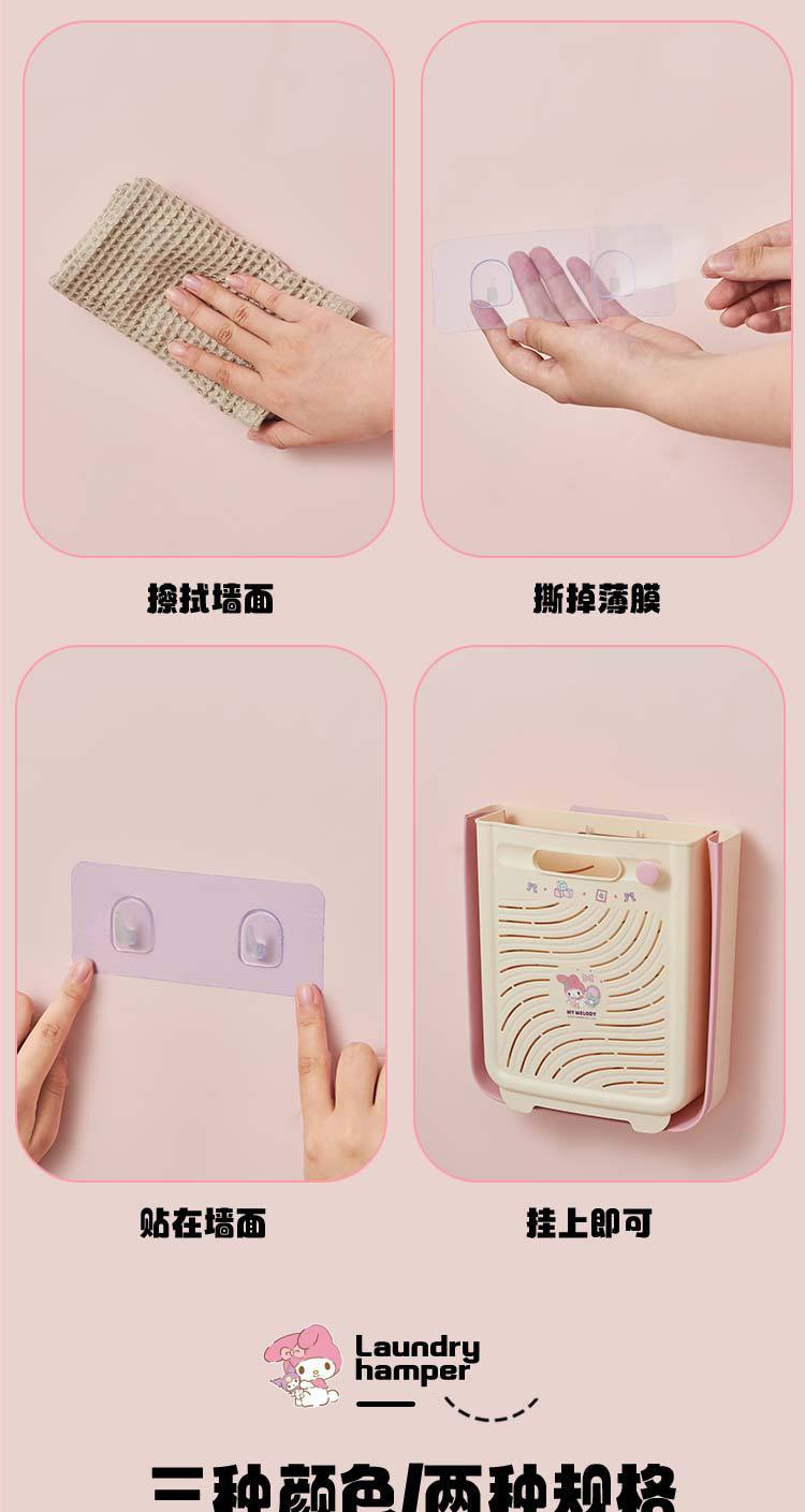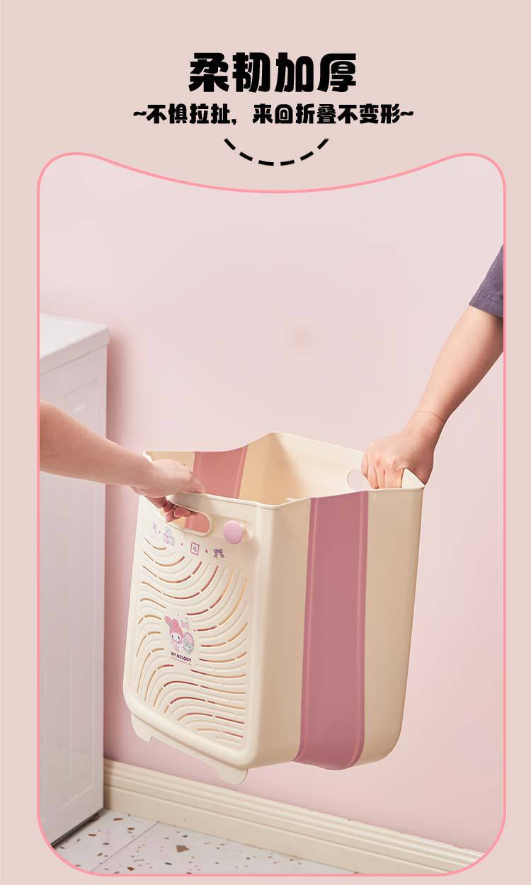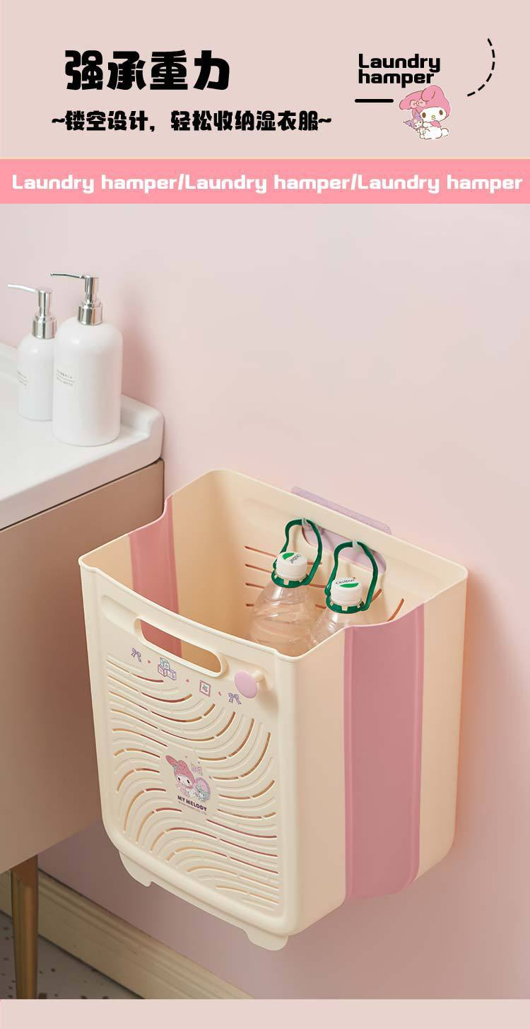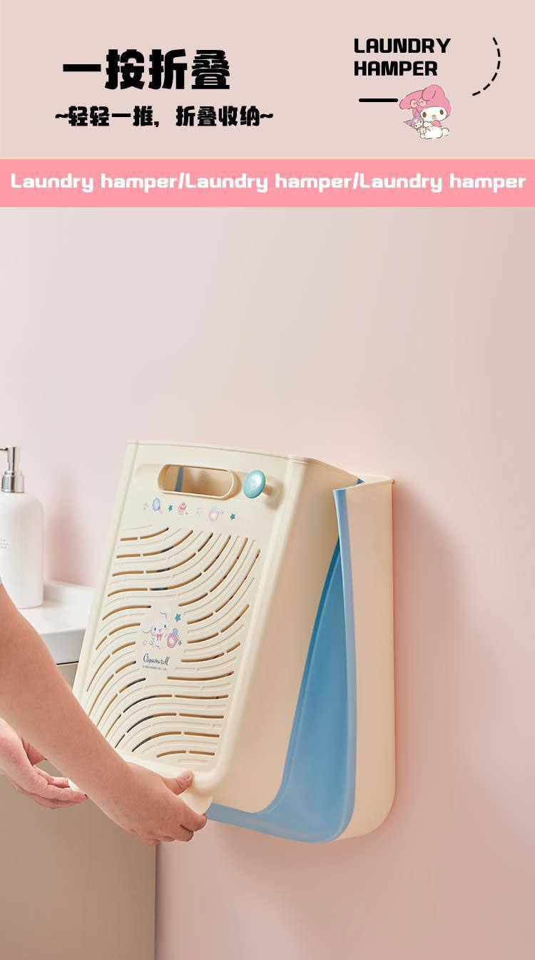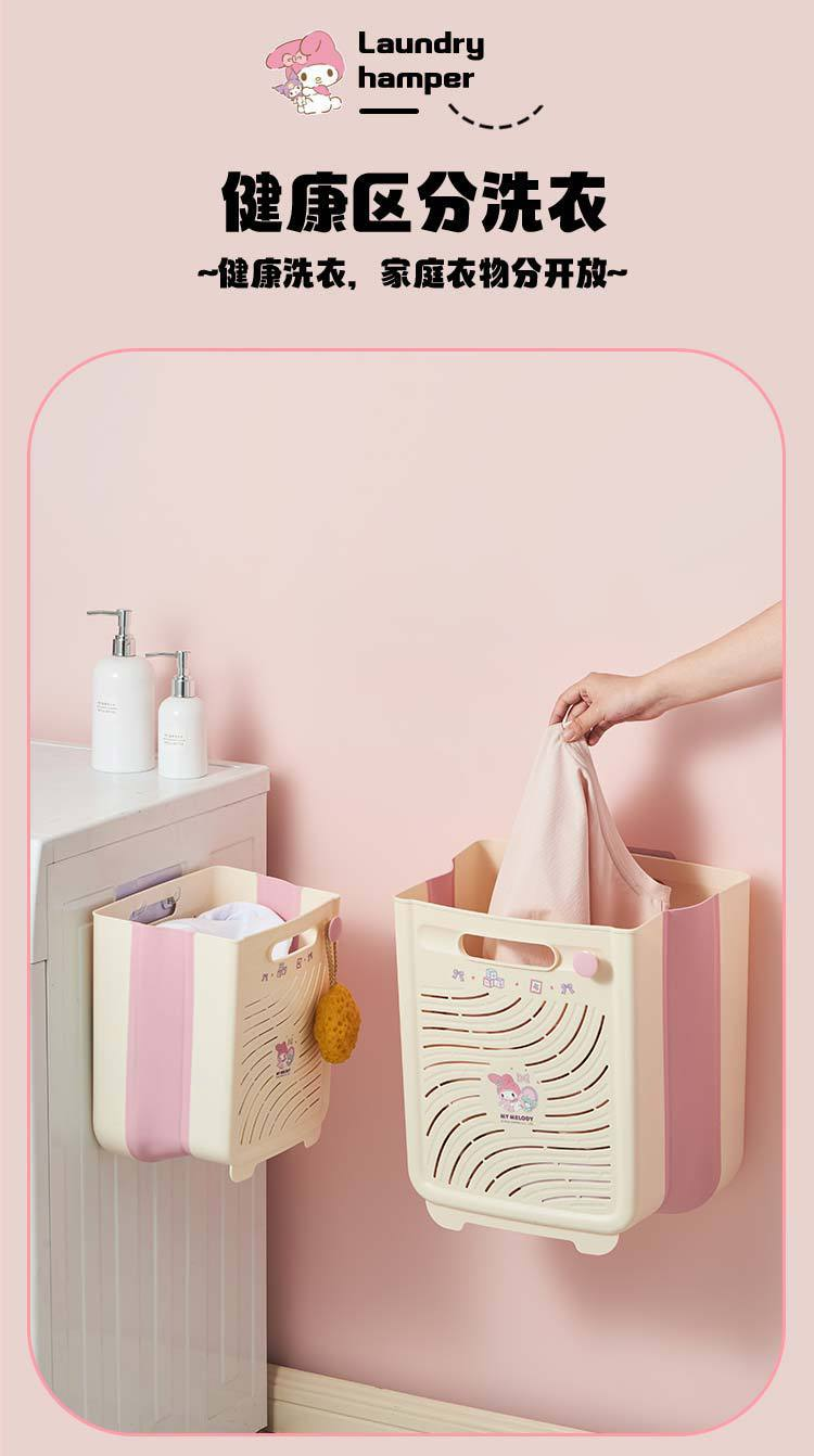 【三麗鷗&塑業】正版 脏衣篓 家用可折叠 加厚洗衣籃 壁挂落地两用衣服收纳筐大号 送禮