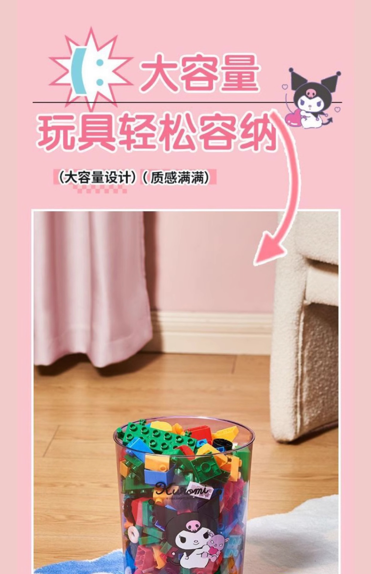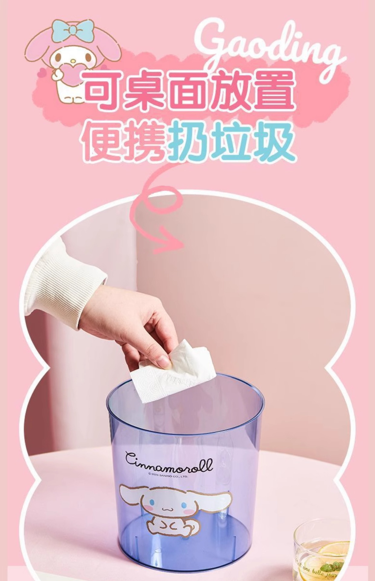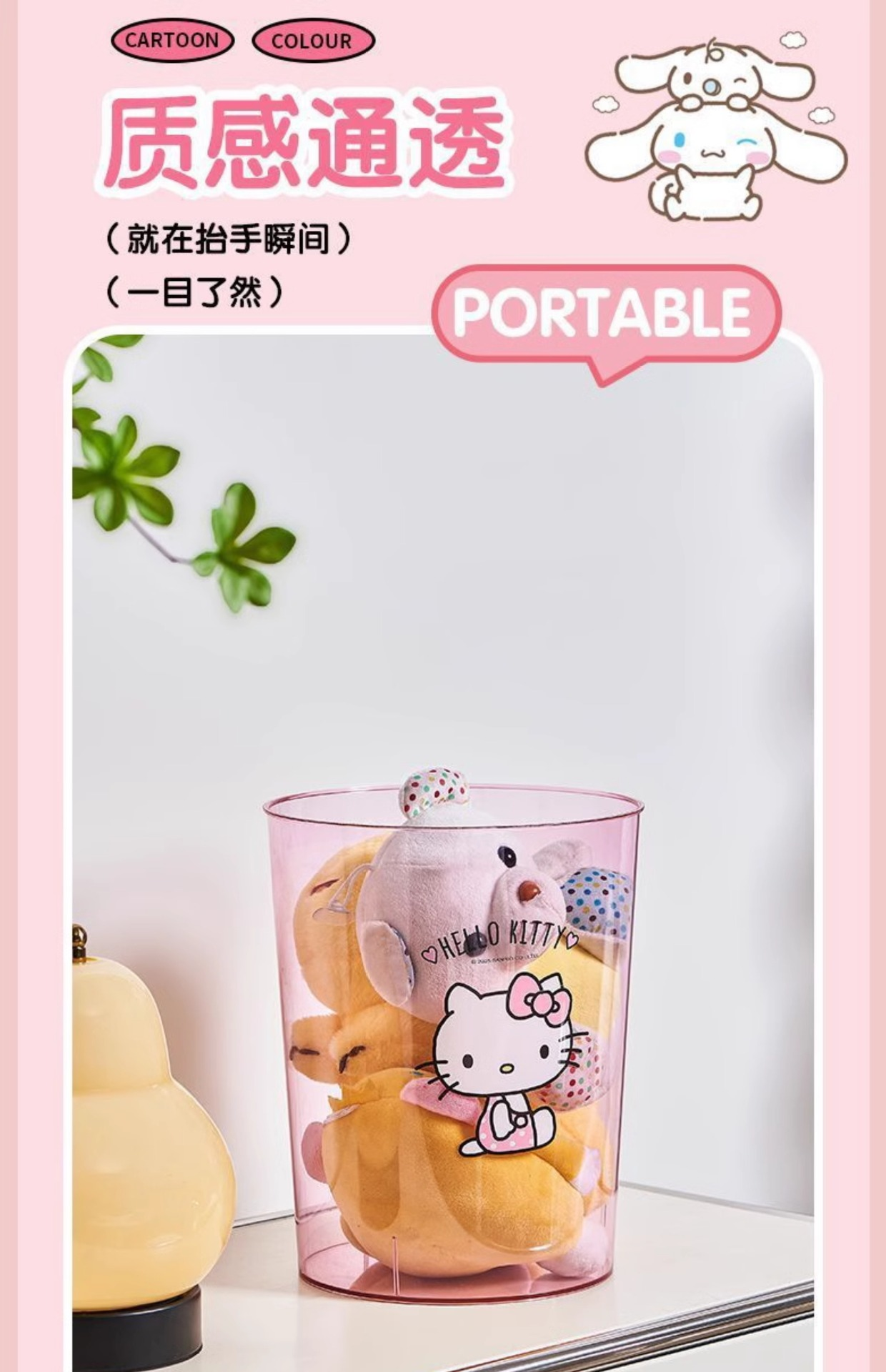 【三麗鷗&塑業】正版 透明桌面垃圾桶 庫洛米 玉桂狗 凯蒂猫 收纳杂物玩具桶 送禮
