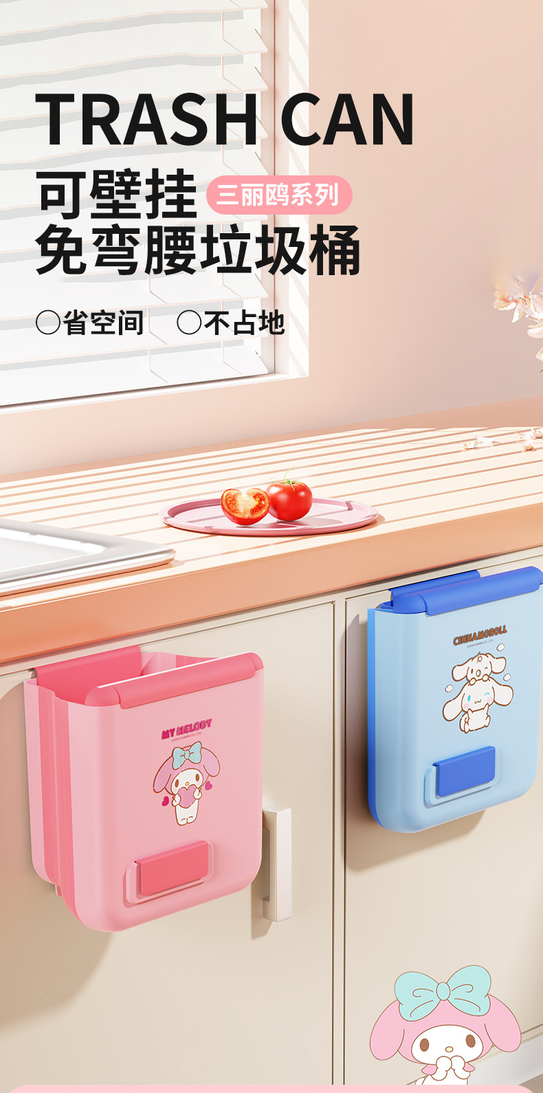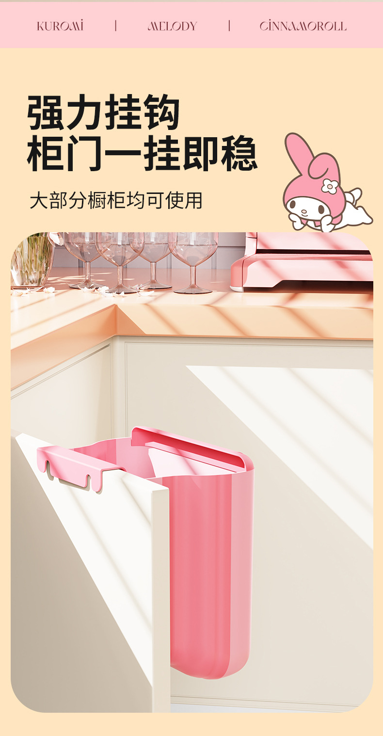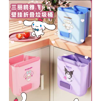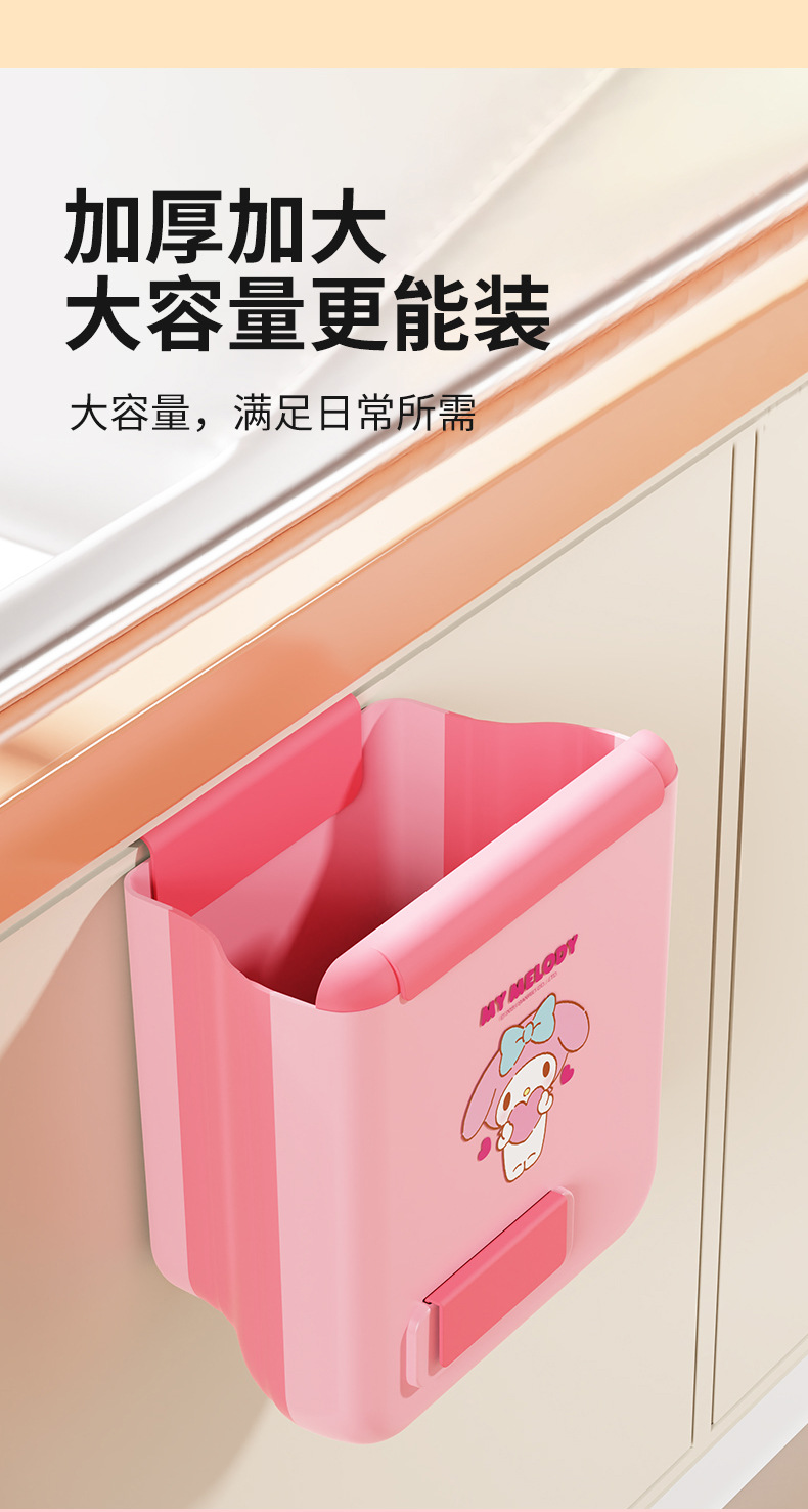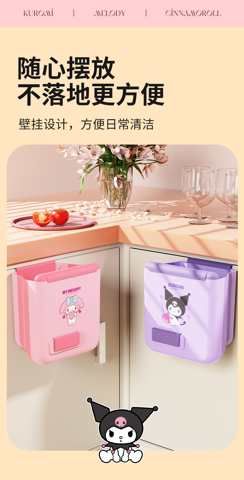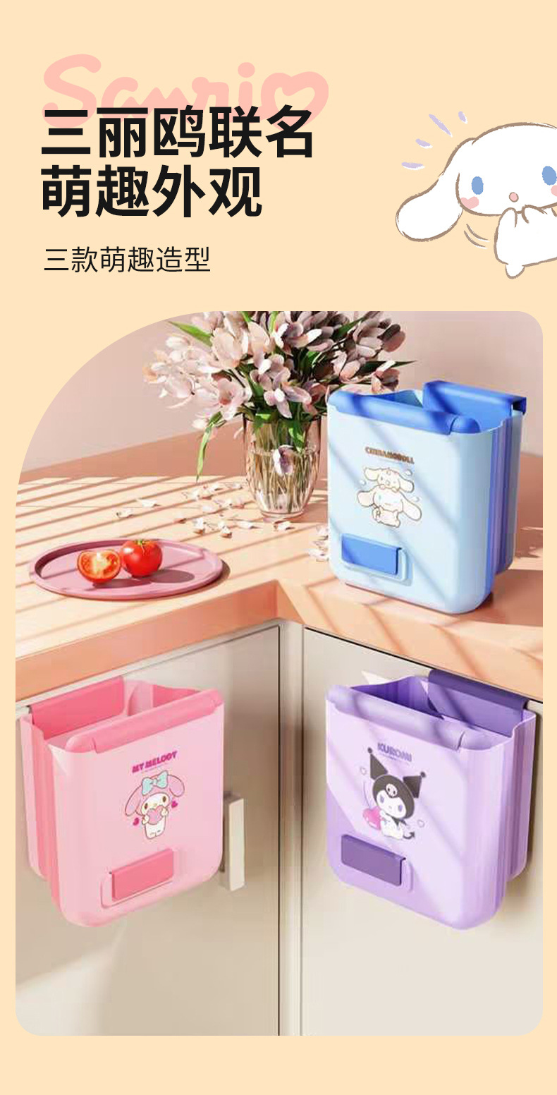 【三麗鷗&塑業】正版 壁挂垃圾桶 免打孔挂式高颜值垃圾桶 壁掛式厨房分类便携垃圾筒 送禮