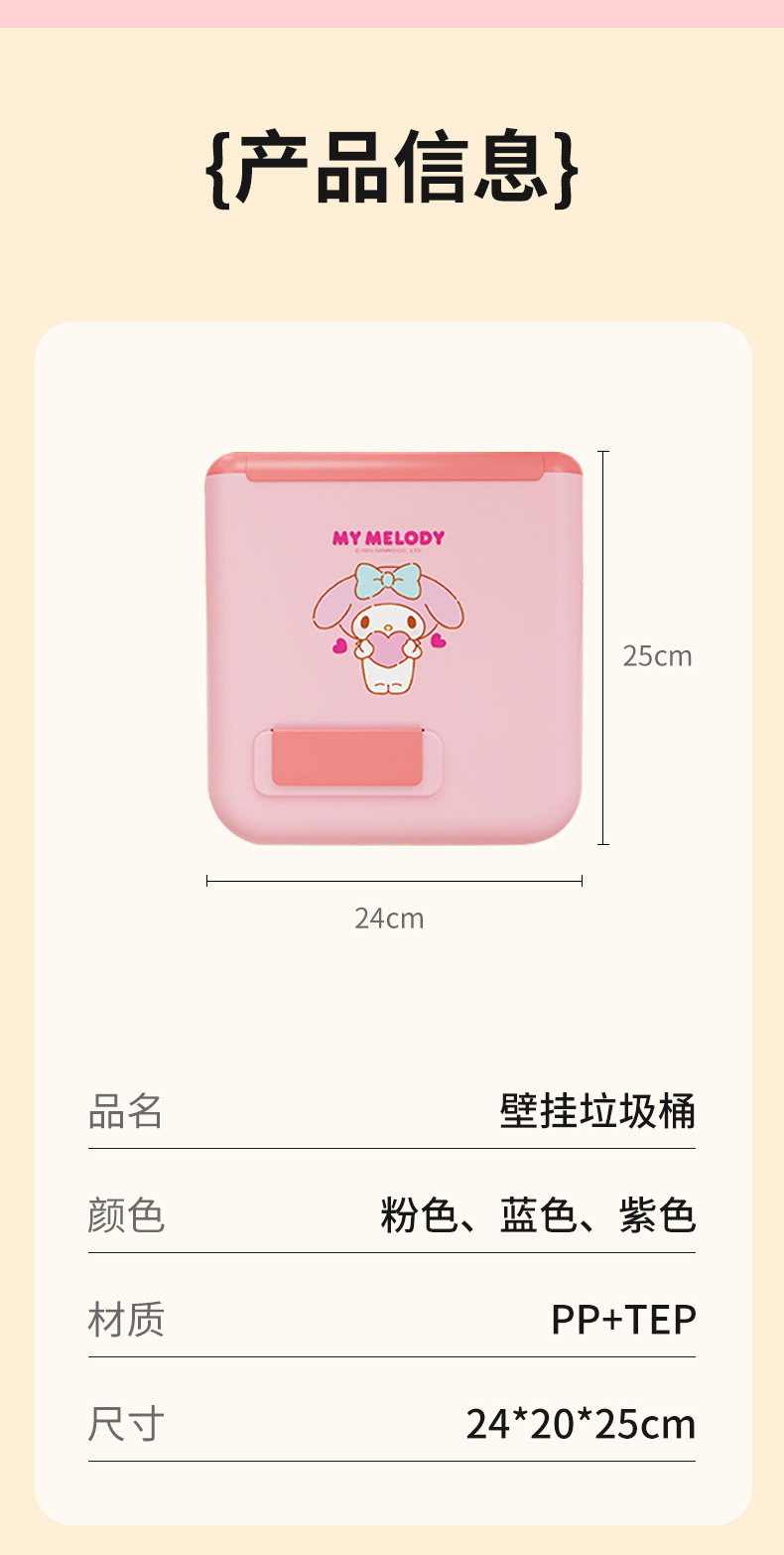 • 美樂蒂-壁挂垃圾桶 美樂蒂-壁挂垃圾桶