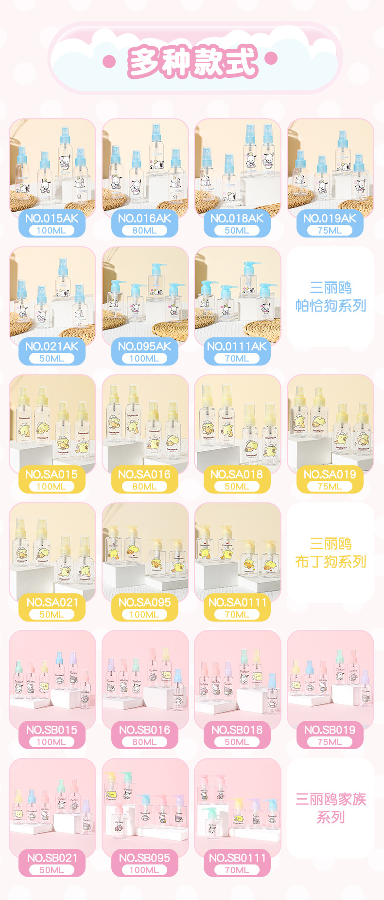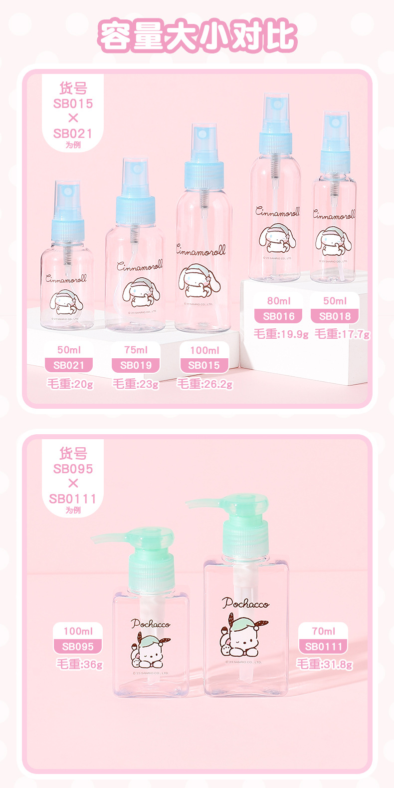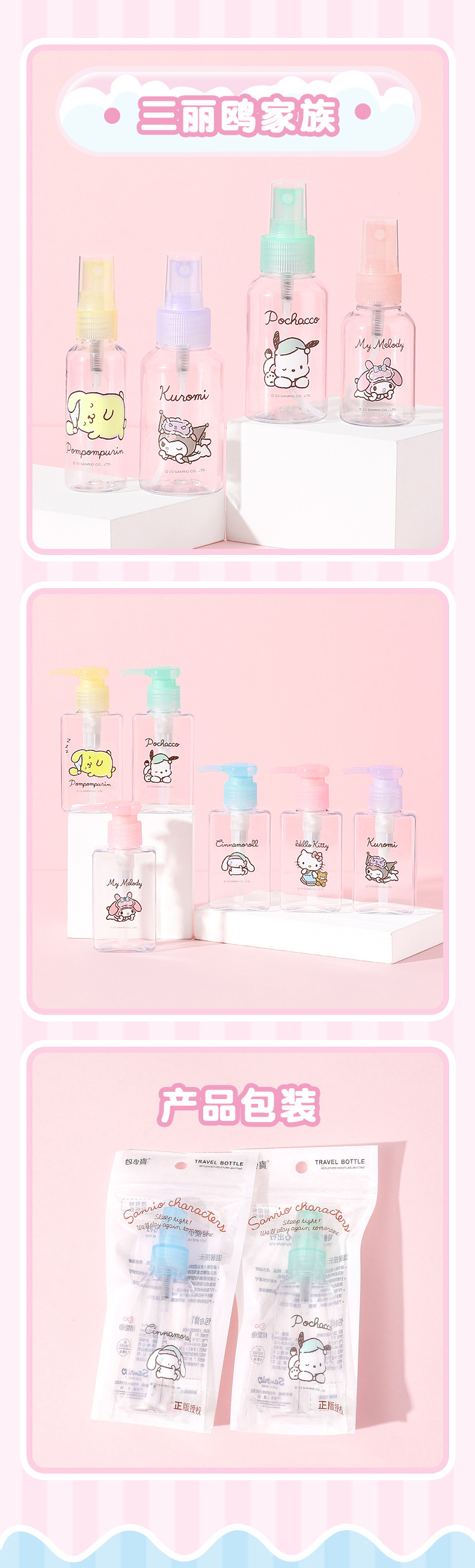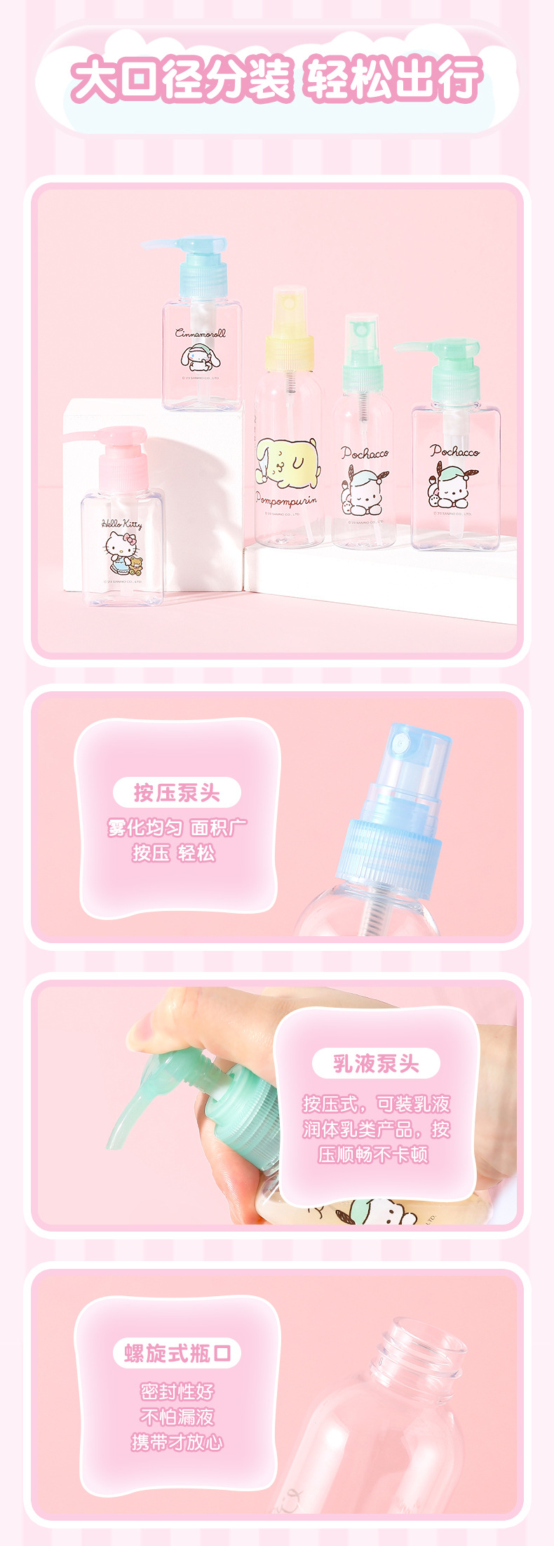 【三麗鷗&塑業】正版 喷雾瓶 化妆水乳液空瓶 按压化妆水分装瓶 旅行便携喷瓶 送禮