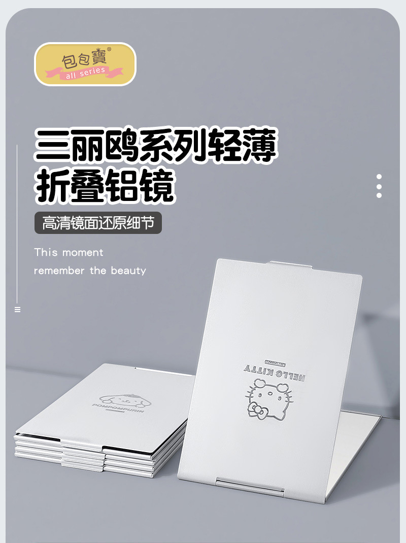【三麗鷗&包包寶】正版 庫洛米 折疊镜 帕恰狗 佈丁狗 桌面化妆鏡 便携小鏡子 輕薄折疊鋁鏡 送禮