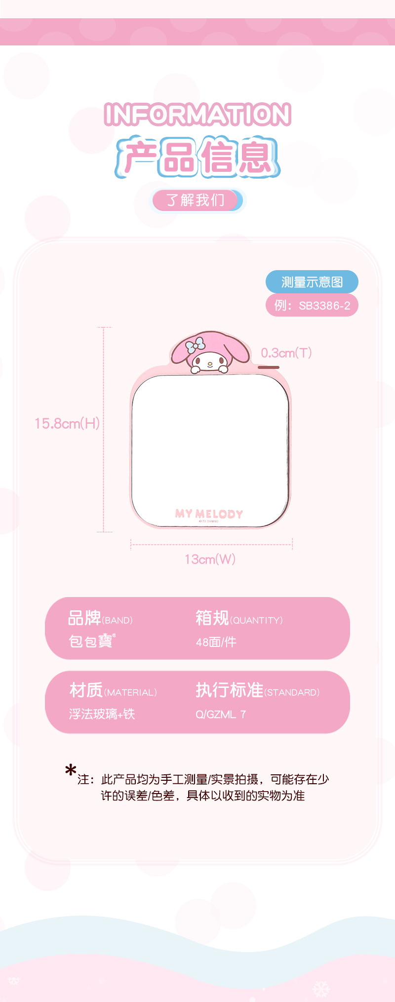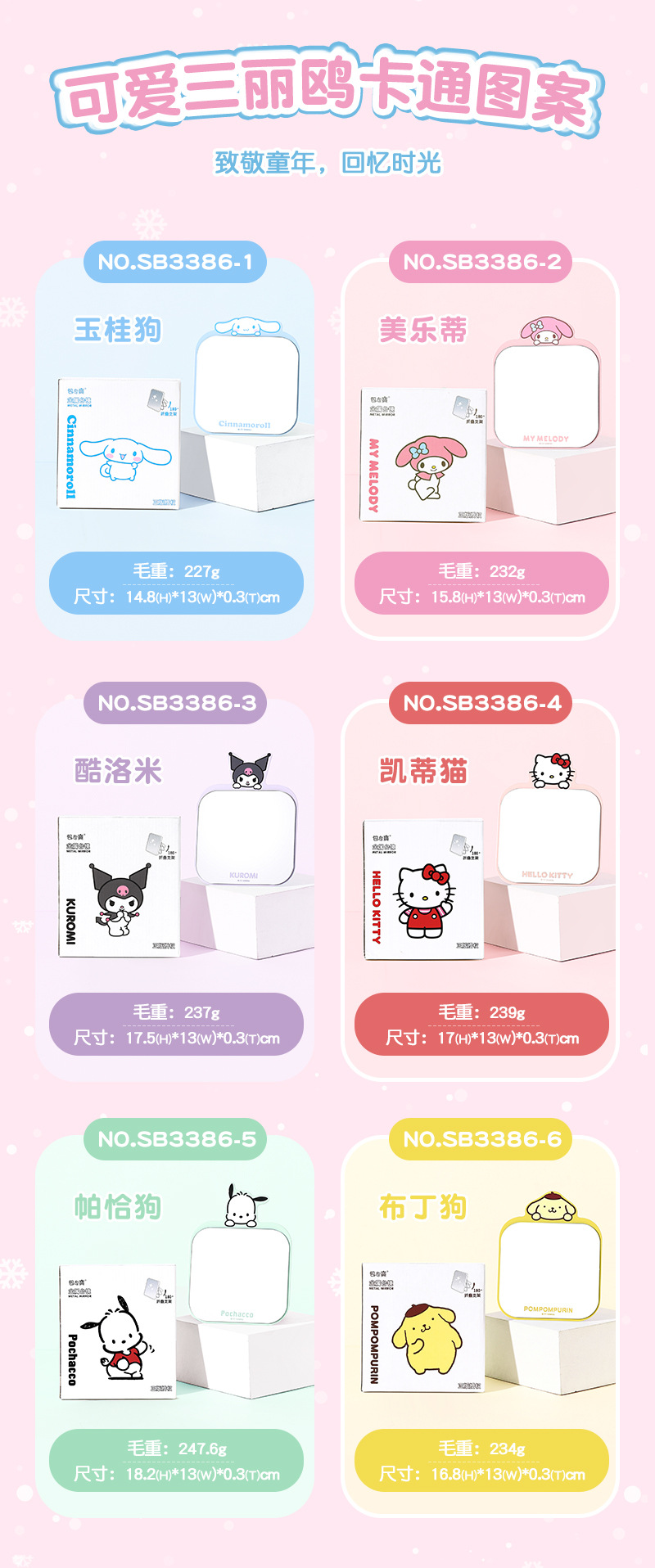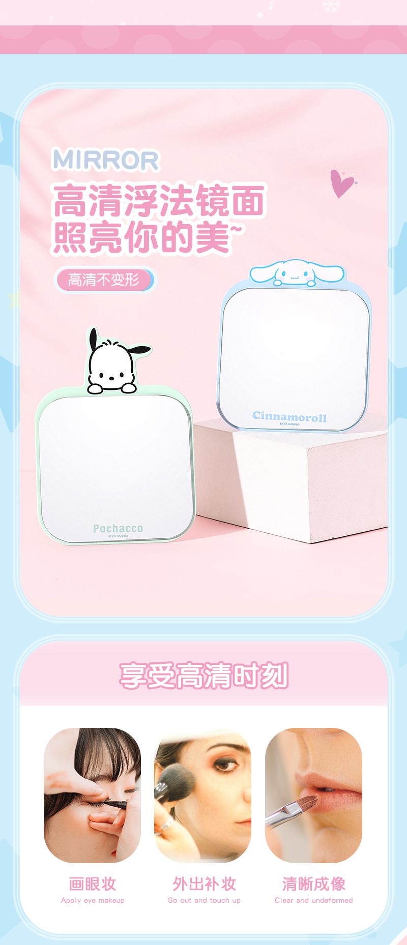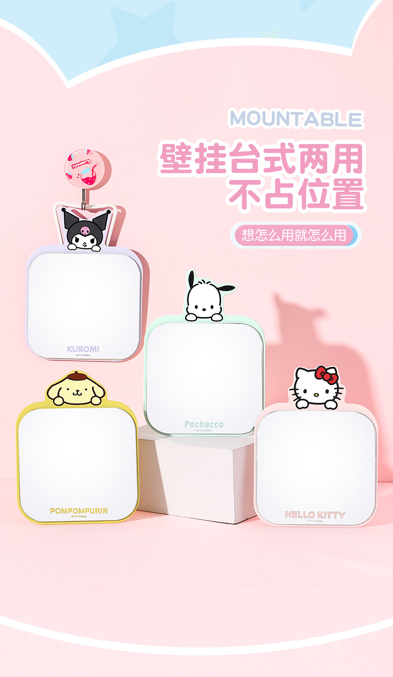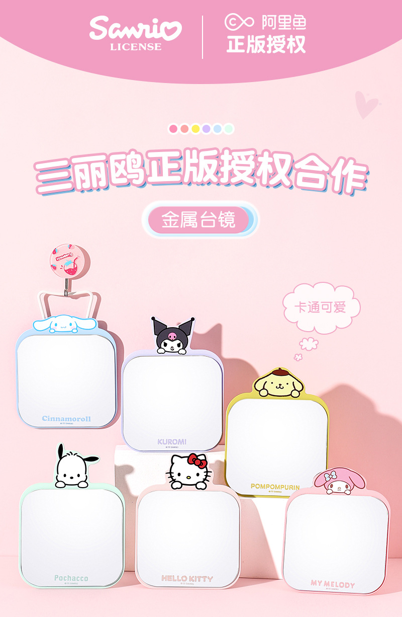 【三麗鷗&包包寶】正版 卡通铁质镜子随身便携挂式学生梳妆折叠桌面化妆镜