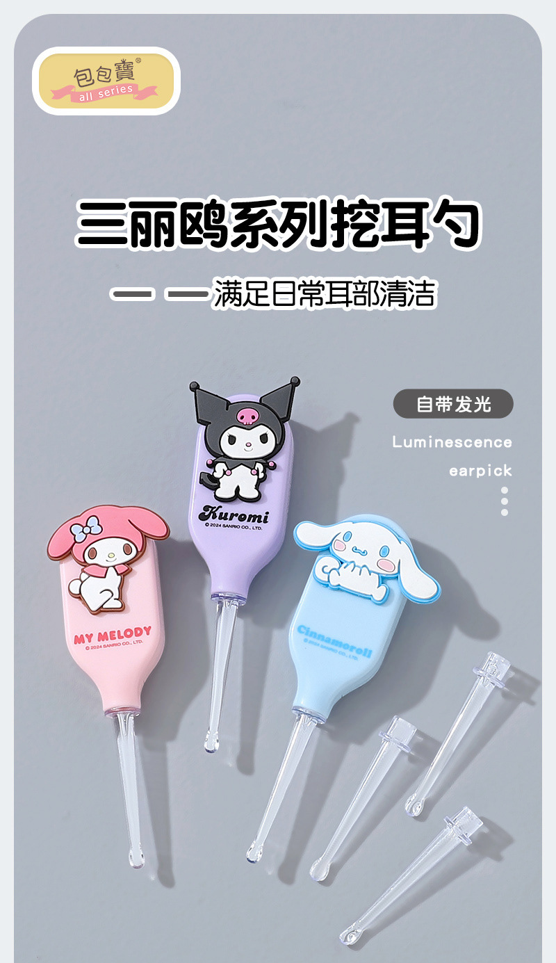 【三麗鷗&包包寶】正版 庫洛米 家用可视挖耳勺 美樂蒂 玉桂狗 儿童专用掏耳神器 发光带灯耳勺 送禮